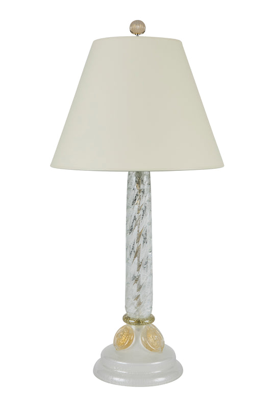 1950s Murano Glass Table Lamp – Twisted Column with Gold Fleck Medallions & Glass Finial, New Wiring & Shade