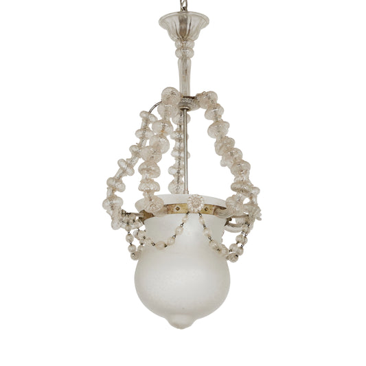 Circa 1940s–50s Murano Blown Glass Lantern – Italian Vintage Pendant Light with Metal Band & Glass Garlands
