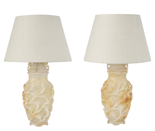 Vintage Marbro Company Hand-Carved Alabaster Lamp – Chinoiserie Style, Circa 1940s