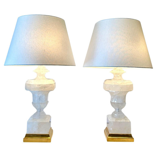 “Lucca” Rock Crystal Urn Table Lamps – Polished Rock Crystal on Gilded Bases with Linen Shades | Exclusive Antonio’s Bella Casa Design