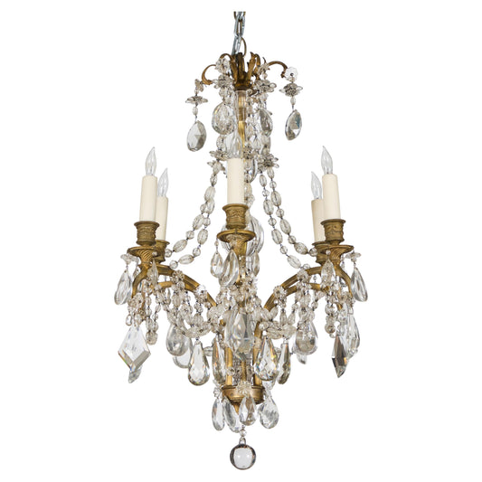 Late 19th Century Petite French Bronze & Crystal Chandelier – 6-Light Gilt Fixture with Crystal Pendeloques