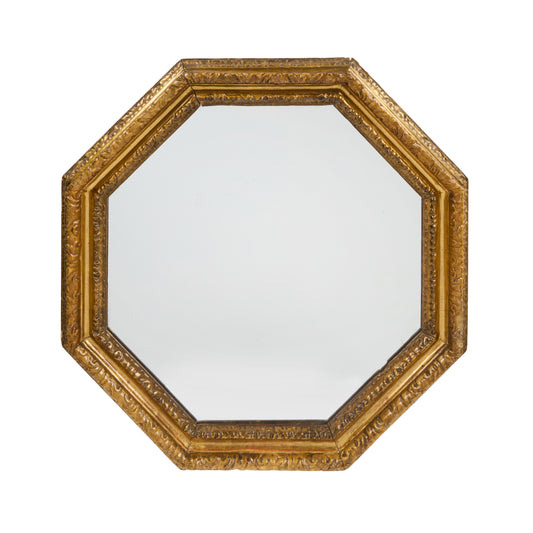 Circa 1850 Italian Gilt-Wood Octagonal Mirror – Hand-Carved Antique Frame with New Mirror Glass