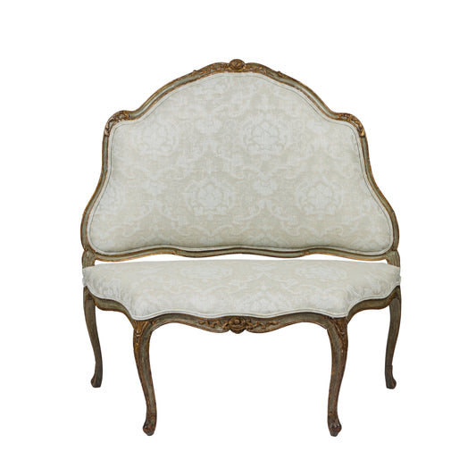18th Century French Hand-Painted and Gilded Hall Bench with New Upholstery