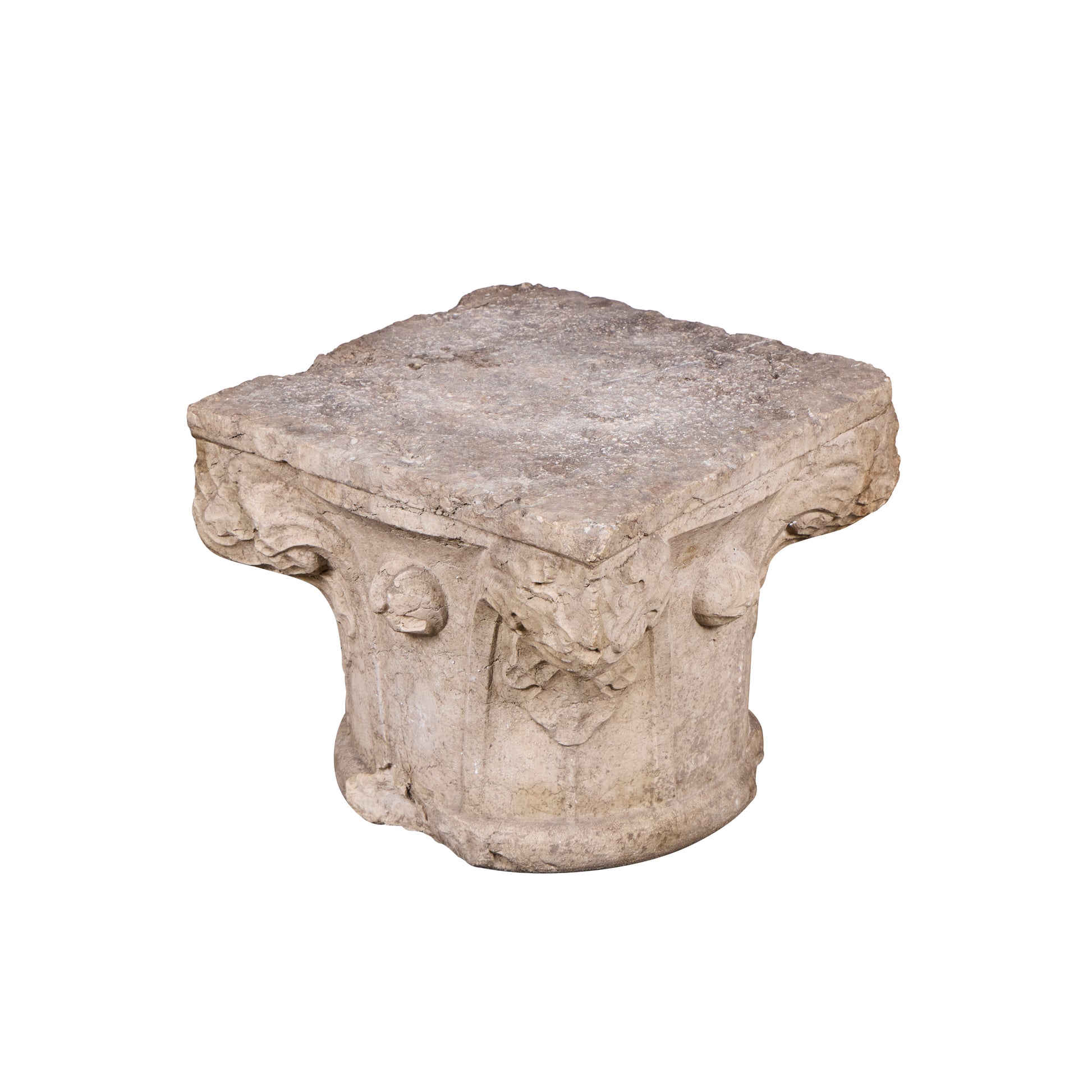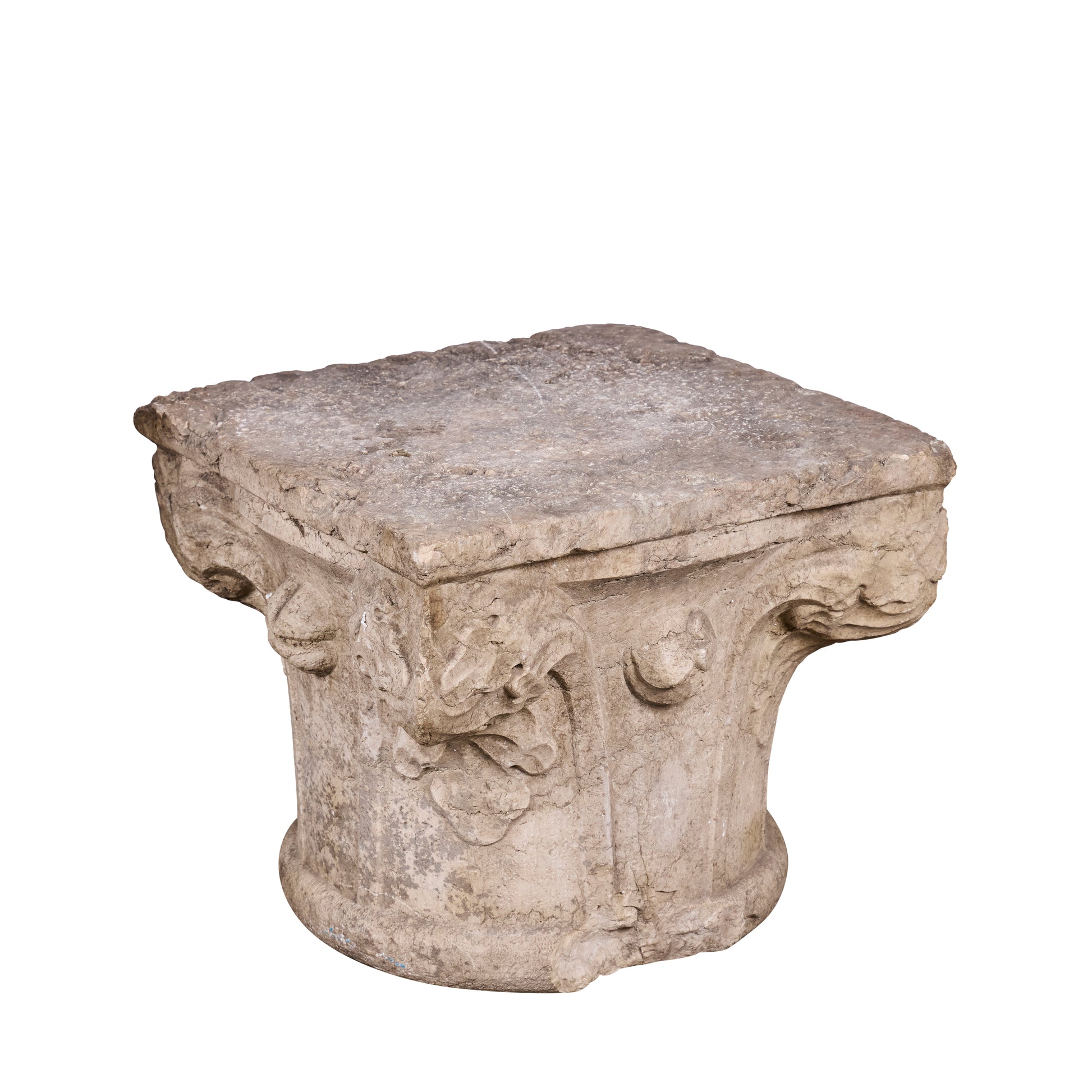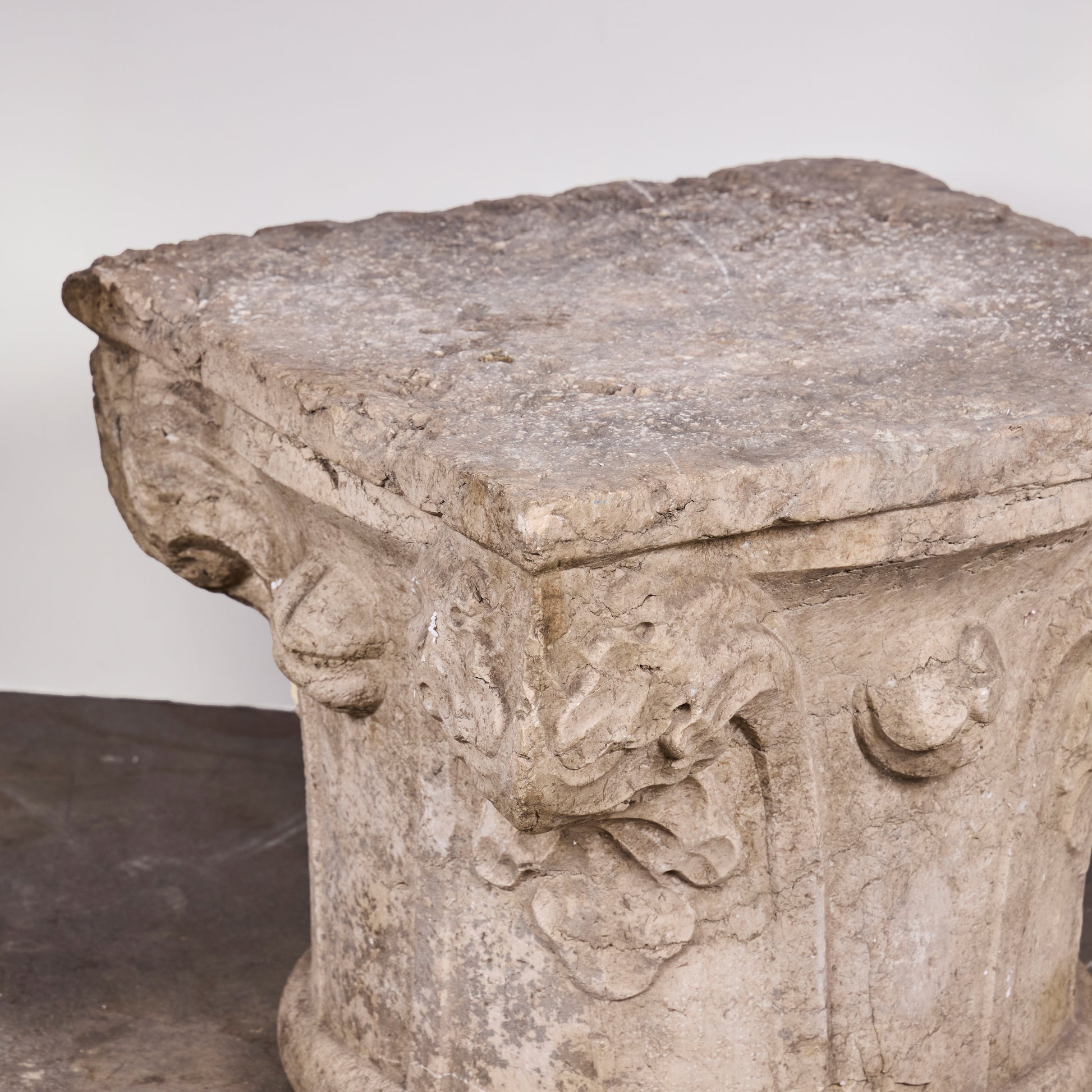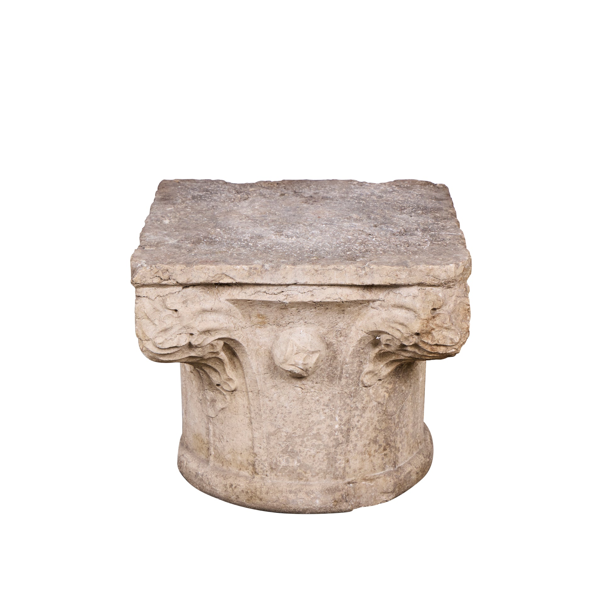 17th Century Italian Hand-Carved Stone Capital Fragment