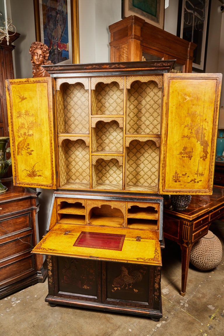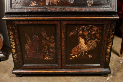 1940s Spanish Chinoiserie Secretary – Hand-Painted Lacquered Drop-Front Bureau