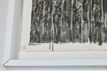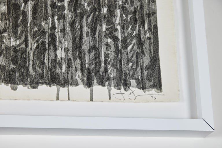 “Flags II” is a striking 1973 screenprint in black and grays by iconic American artist Jasper Johns (b. 1930). This impression is signed, dated, and numbered 37/60, reflecting Johns’ ongoing exploration of national symbolism through experimental form and muted palette. A rare example of his work in grayscale, the piece was notably included (another impression) in Jasper Johns: Gray at the Art Institute of Chicago and The Metropolitan Museum of Art, New York.