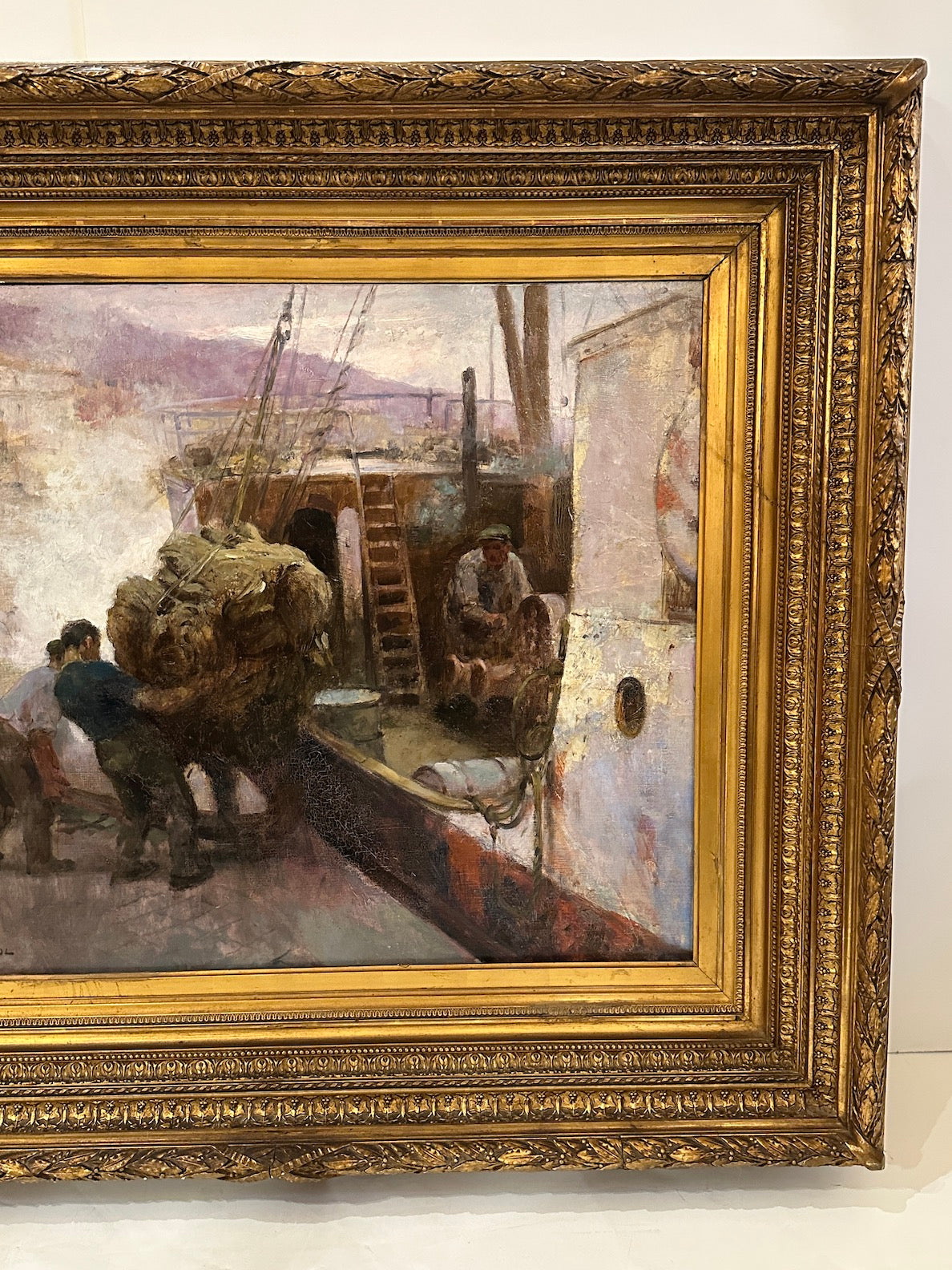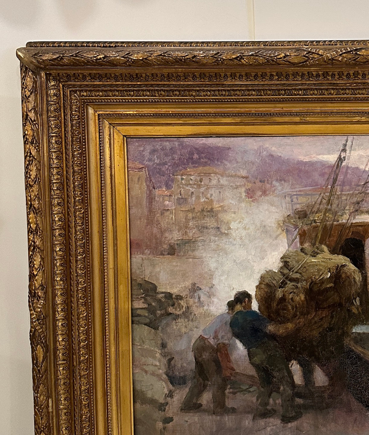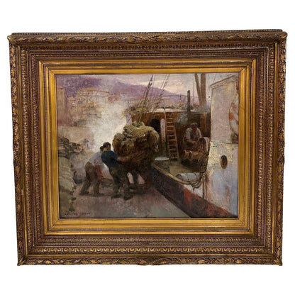 “Débardeurs au Travail” by Jacques Madyol – Framed Antique Belgian Oil Painting