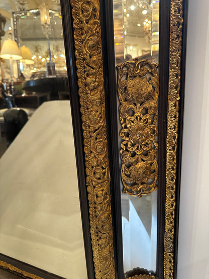 Early 19th Century French Brass Repoussé Mirror with Ebonized Frame and Diamond Dust Glass