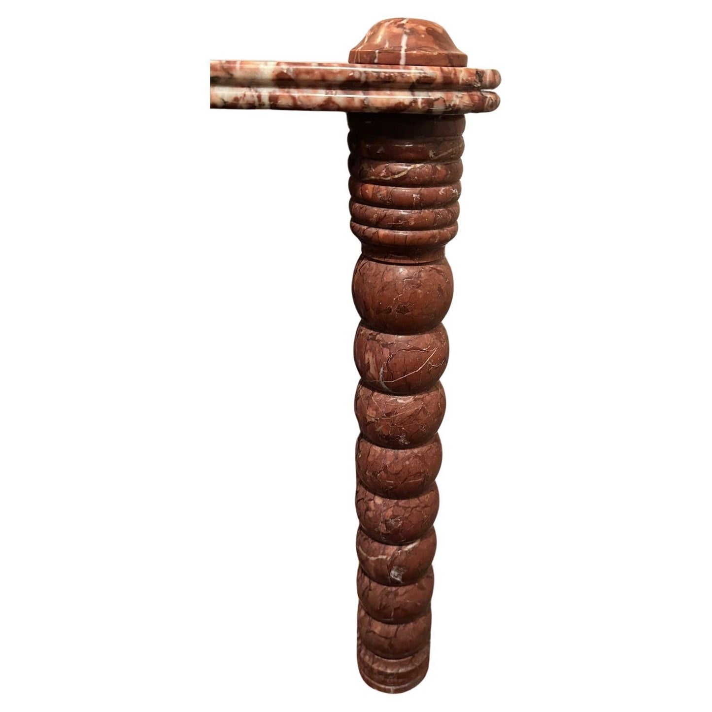 Perfect for use in a kitchen, patisserie, or refined retail display, the piece offers both functional surface area and sculptural presence. Each tier is made of thick marble slabs, and the modular design allows the shelves and posts to disassemble, making transport and installation remarkably easy for a piece of this weight and stature.