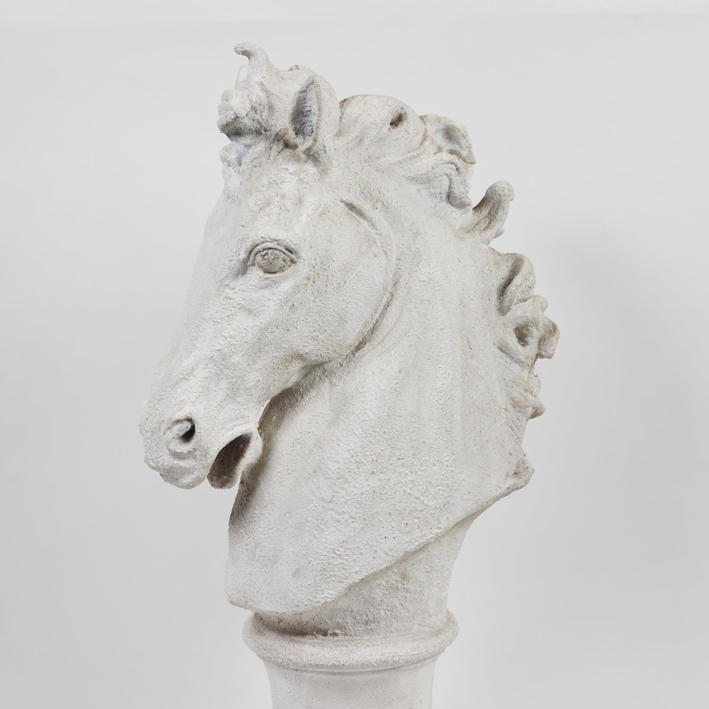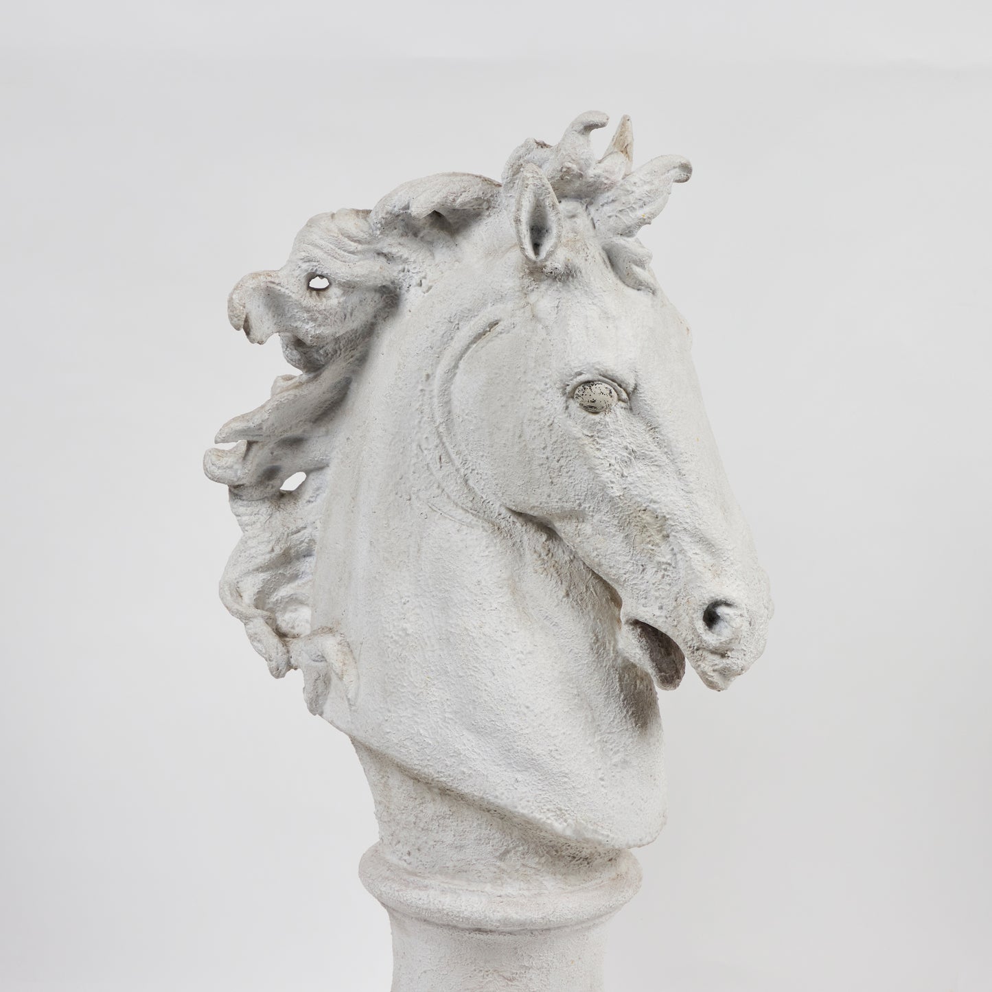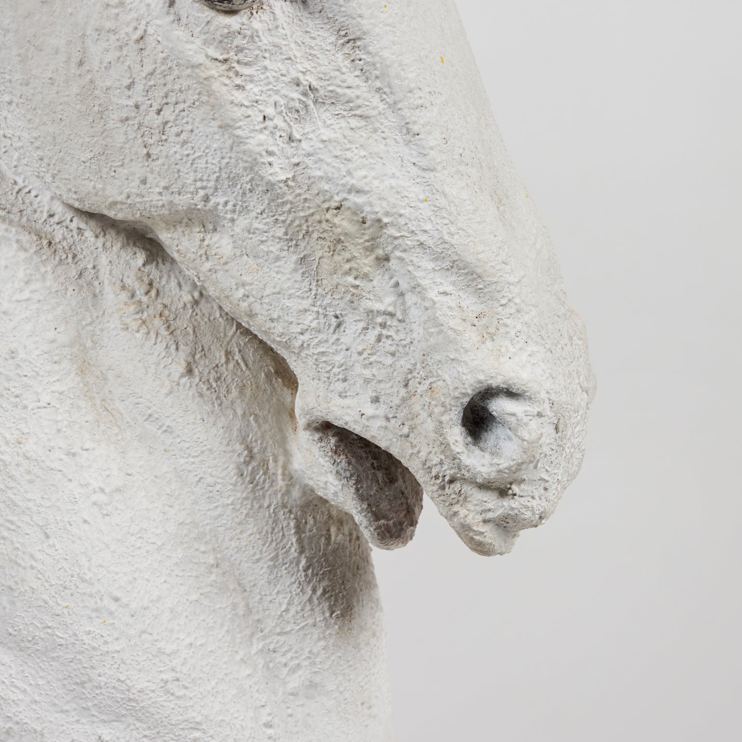 Modern Italian Gesso Horse Head Sculpture – Equestrian Art on Round Base