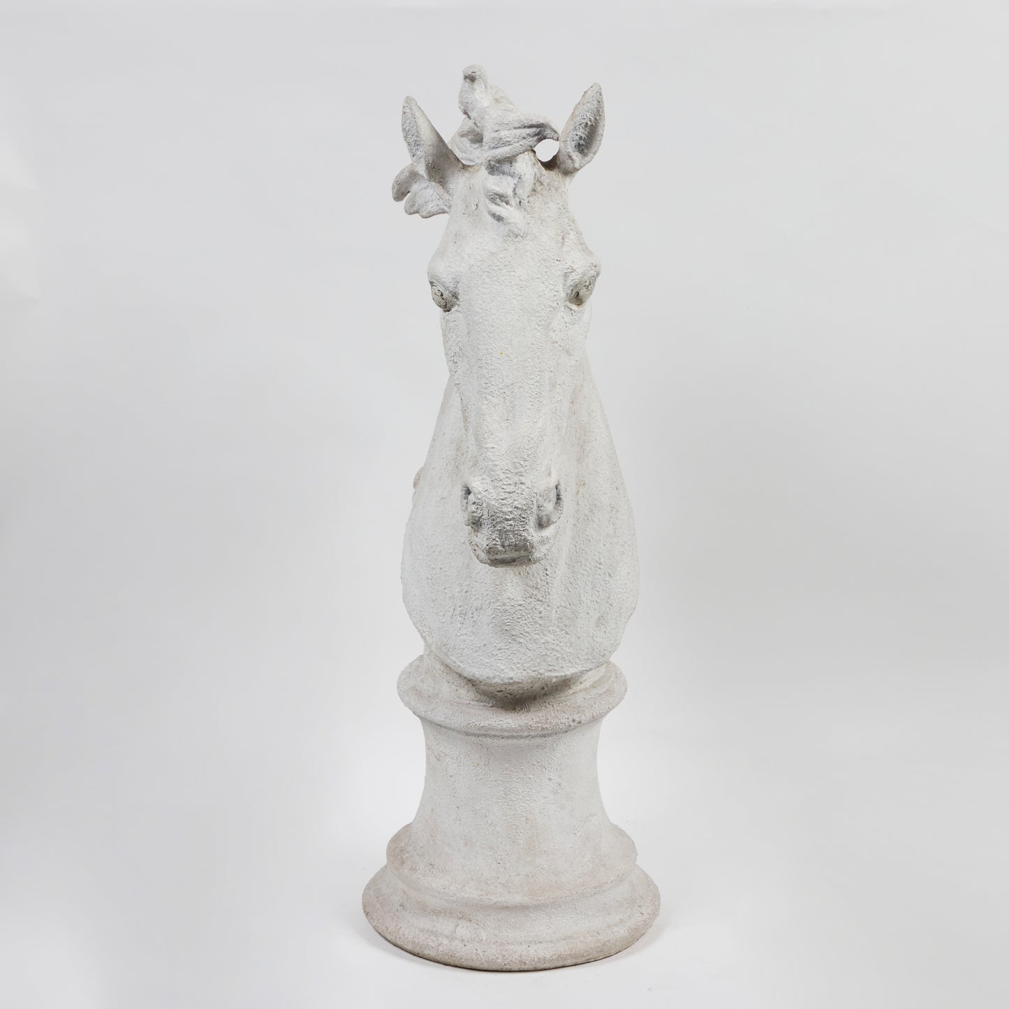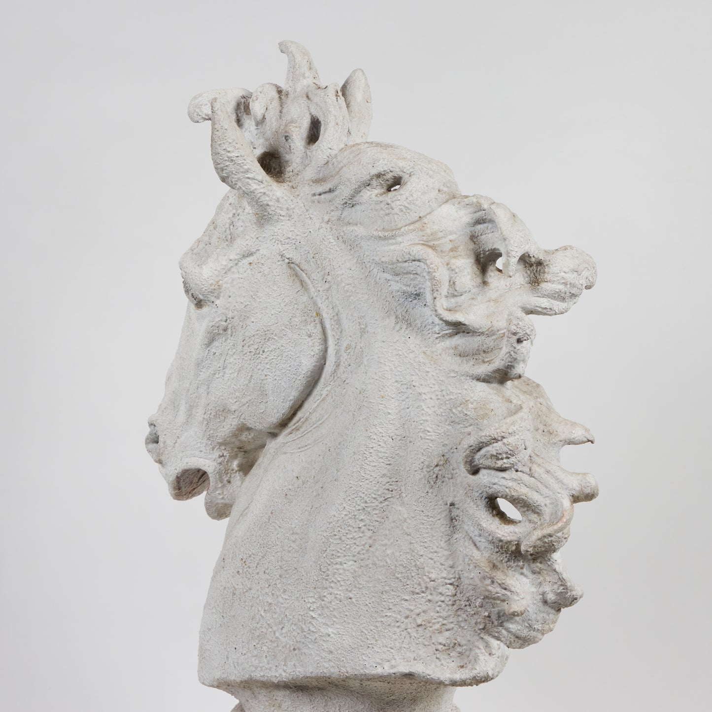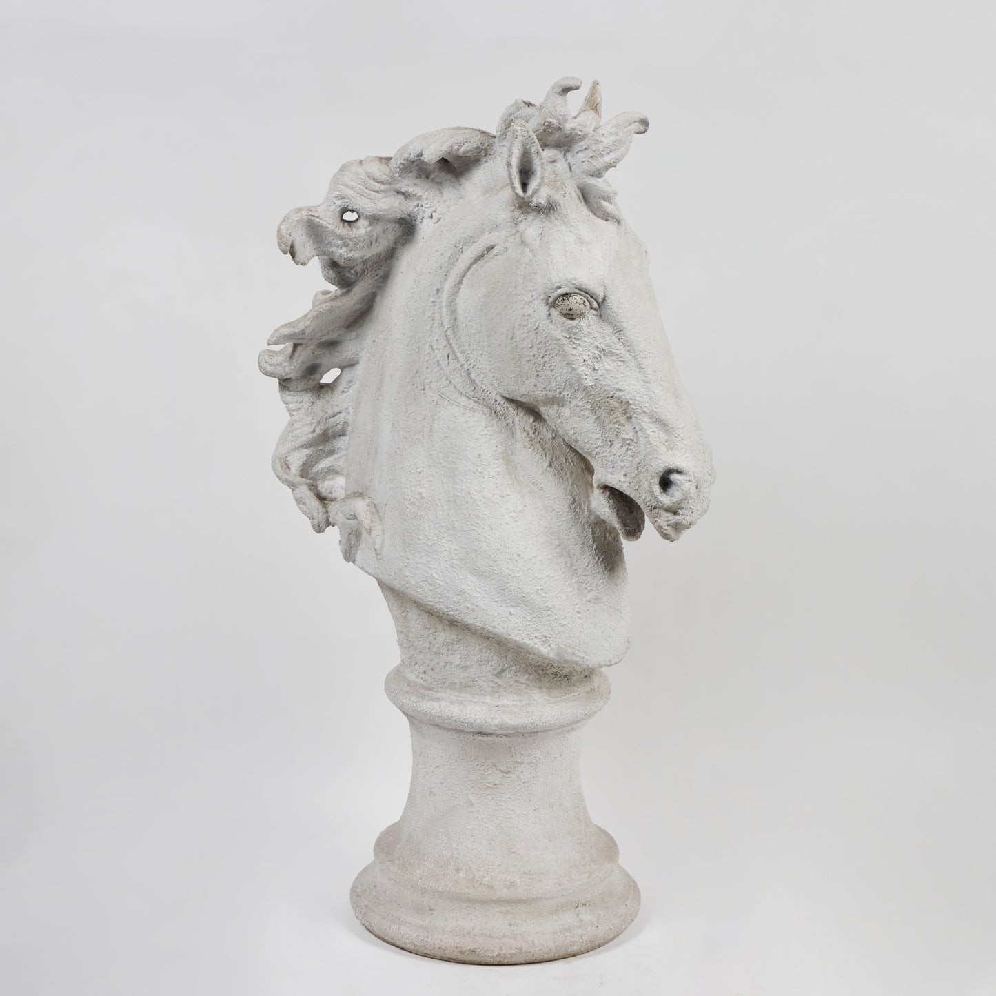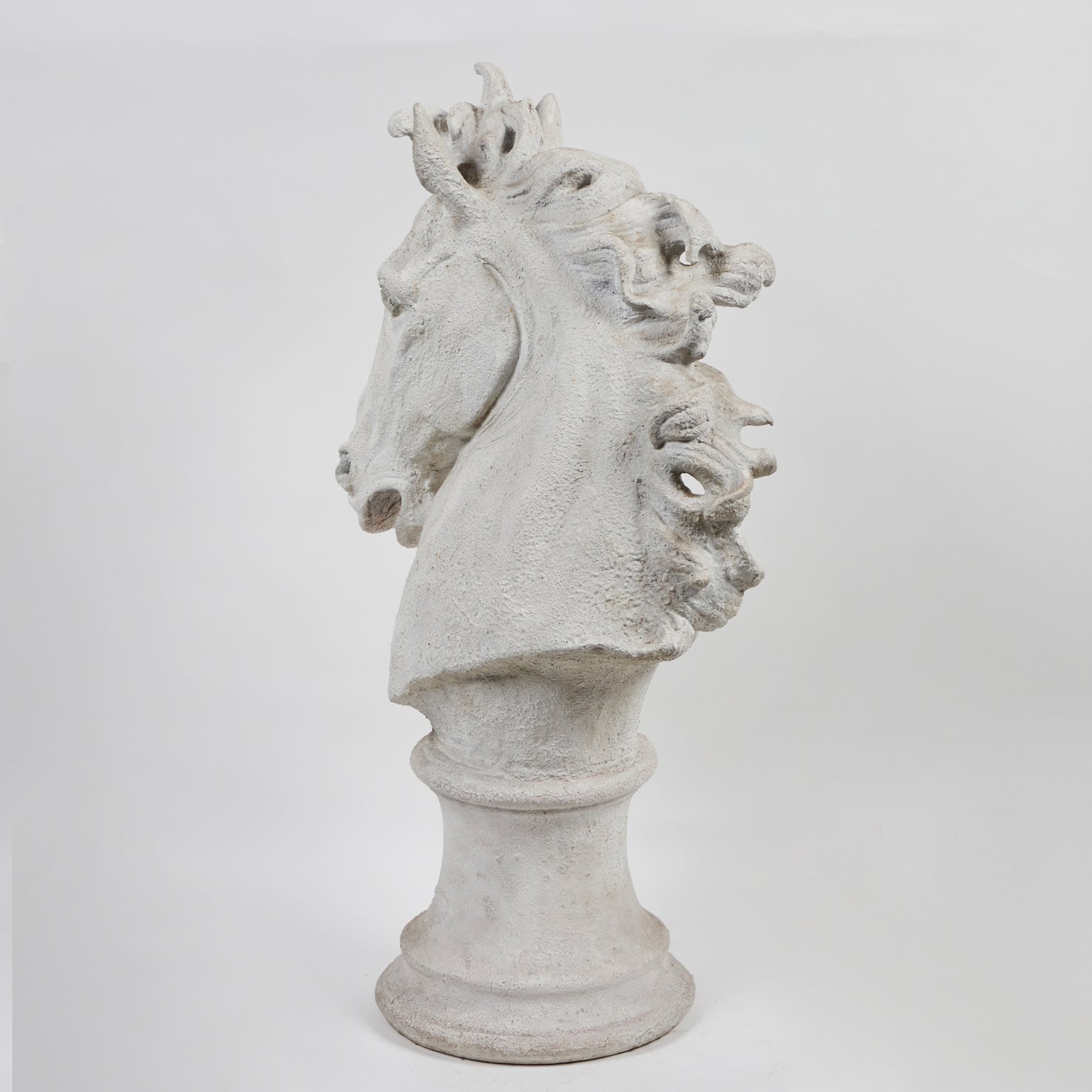Modern Italian Gesso Horse Head Sculpture – Equestrian Art on Round Base
