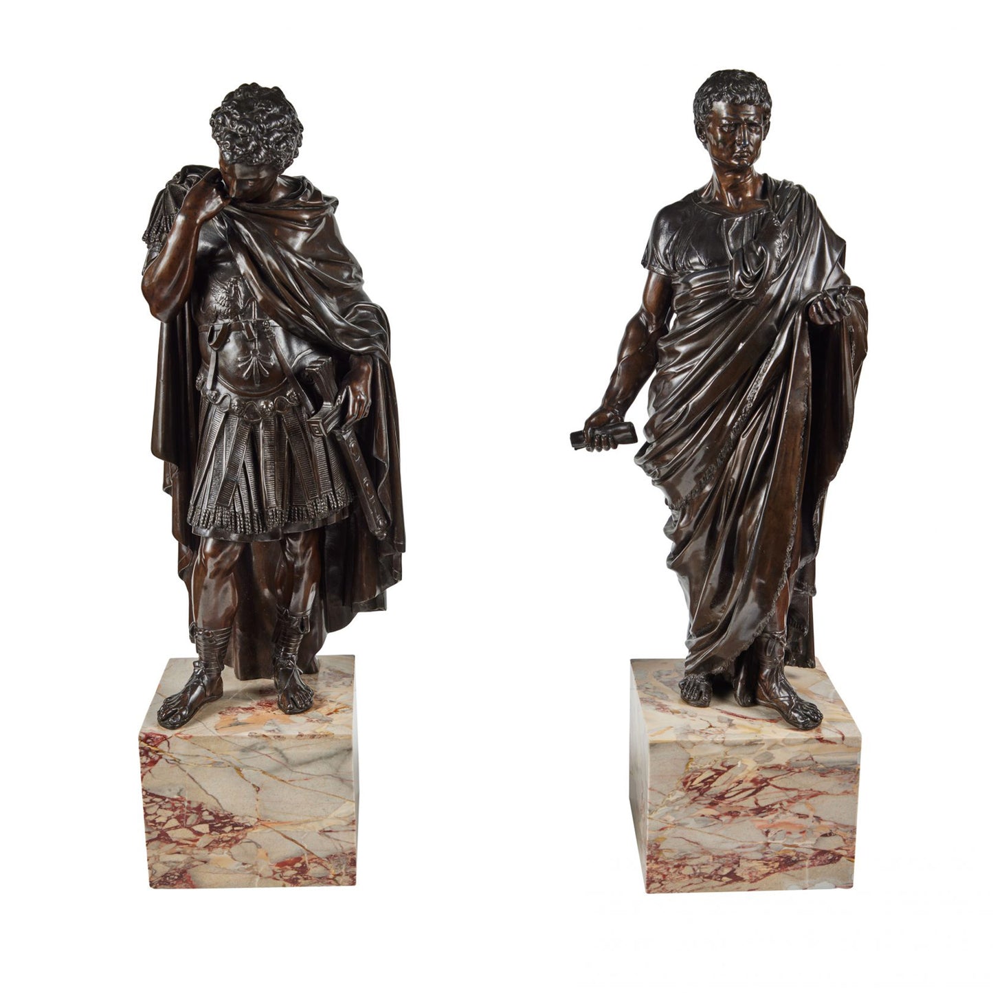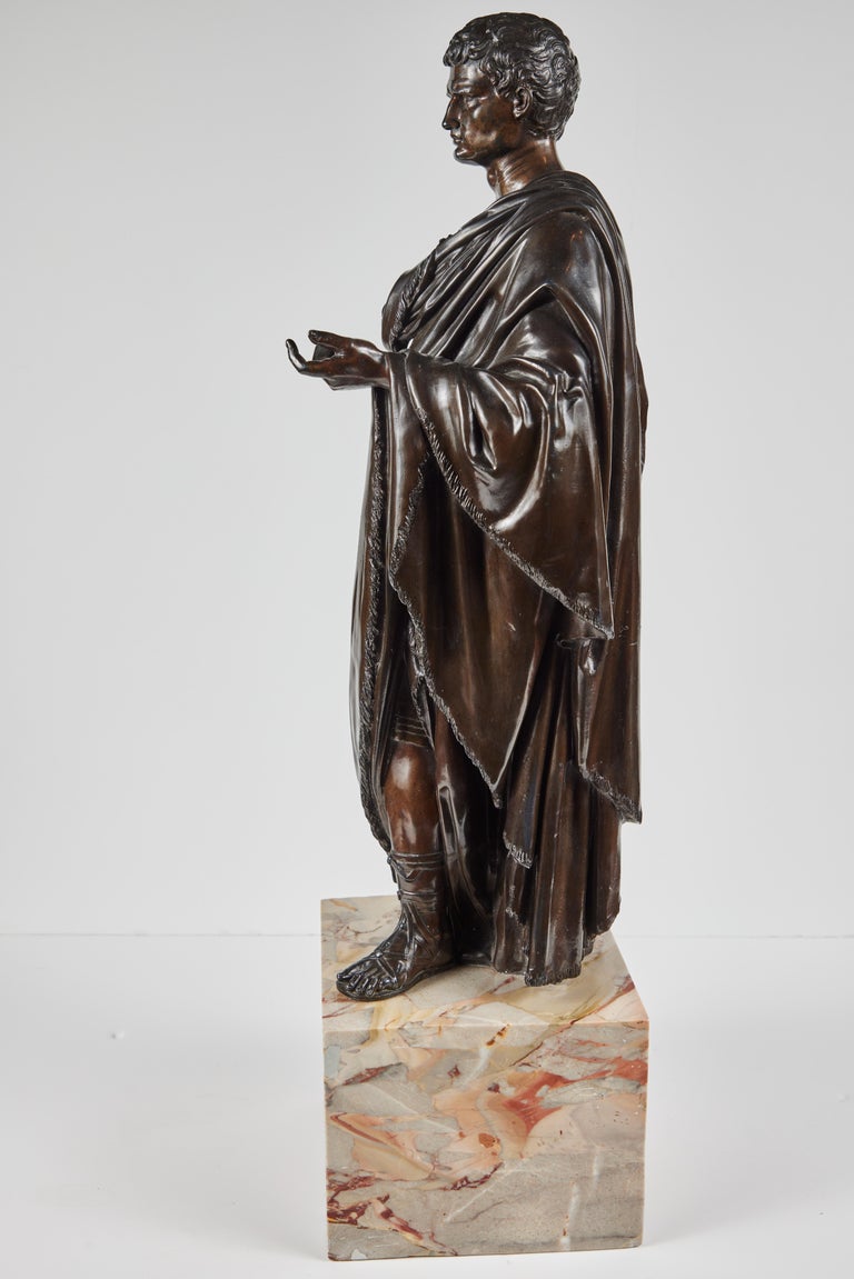 Grand Tour Pair of Roman Bronze Figures – Julius Caesar & Emperor on Marble Bases, c. 1900