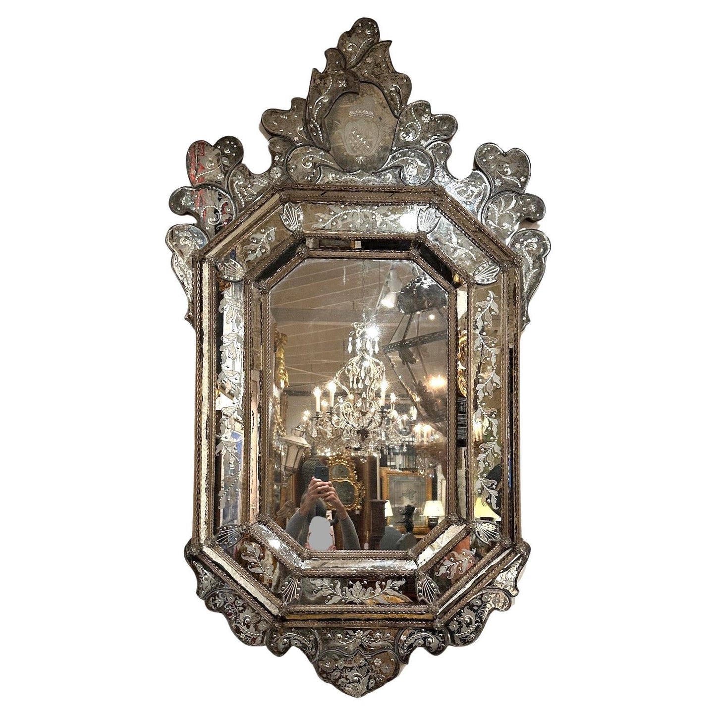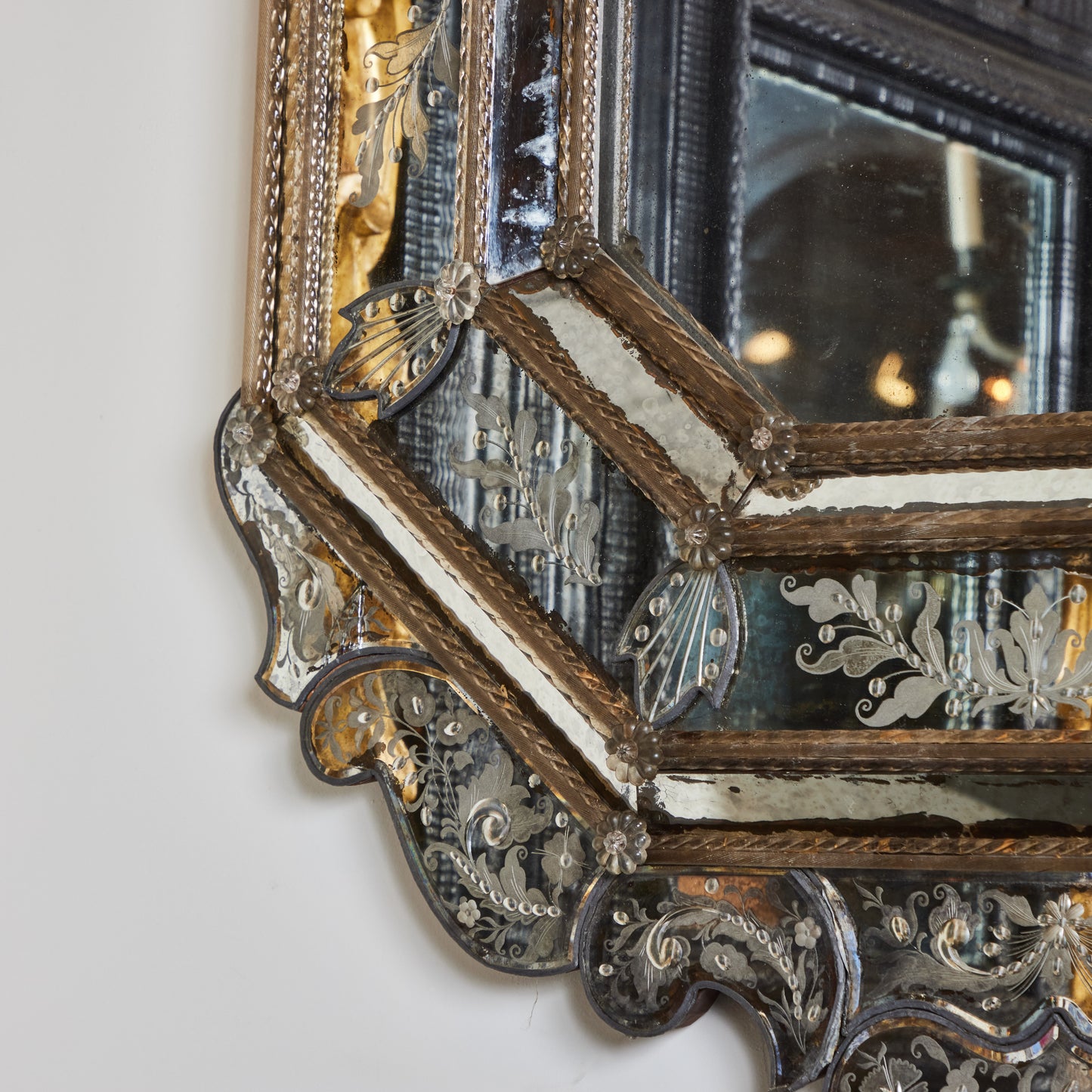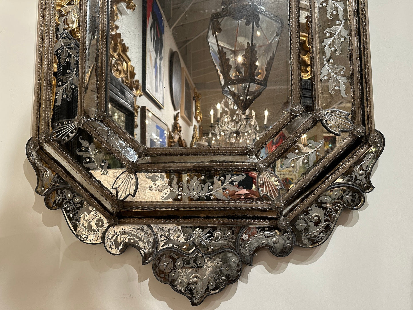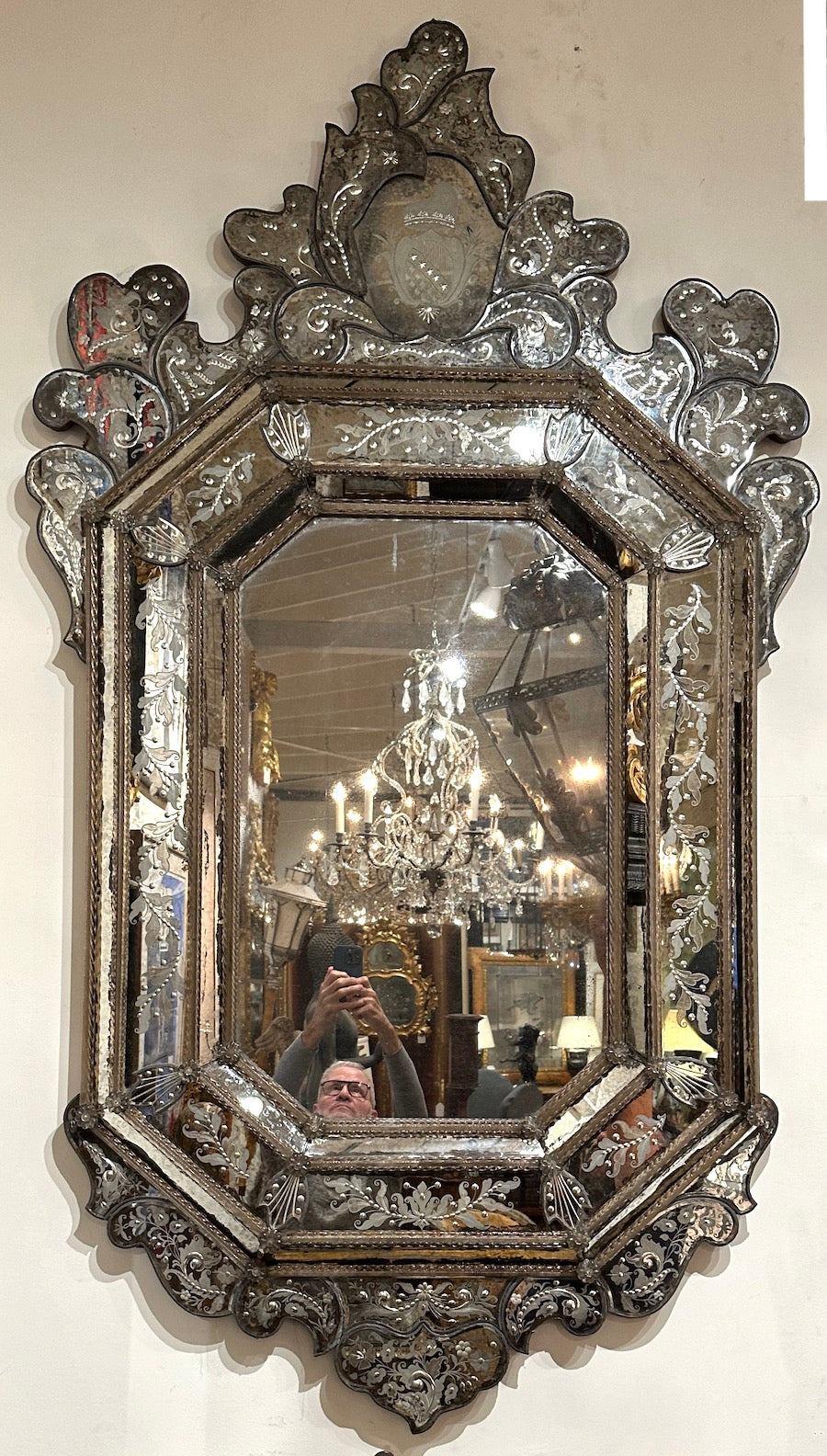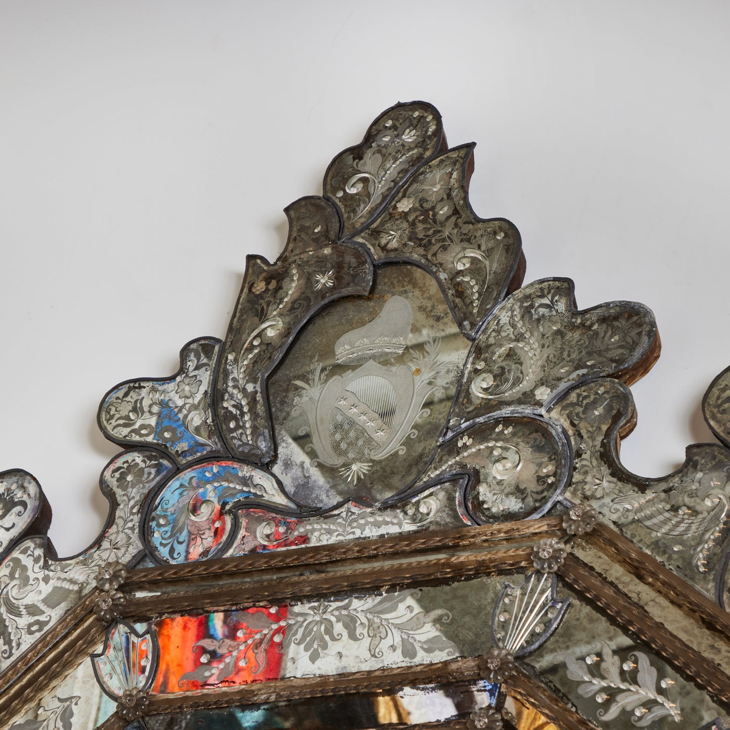 Its generous scale and intricate etched detailing make it a statement wall piece, while the age-appropriate loss to the silvering enhances its authentic antique character. A rare find for collectors of 18th century Venetian mirrors, or those seeking a historically significant, hand-crafted decorative mirror for refined interiors.