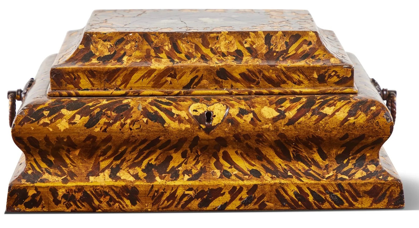 Hand-Painted Tole Letter Box with Hidden Compartment, England, Circa 1820