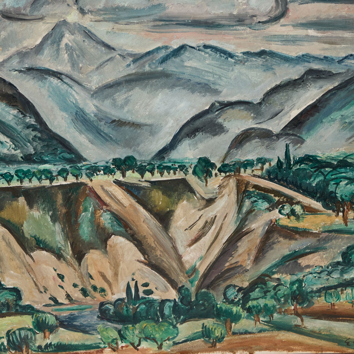 Bring timeless French artistry into your collection with this 1920 oil on canvas landscape by renowned French painter Achille-Émile Othon Friesz (1879–1949). A key figure in early 20th-century modernism and a contemporary of Fauvist artists like Matisse, Friesz was known for his expressive brushwork, bold color palettes, and dynamic compositions.
