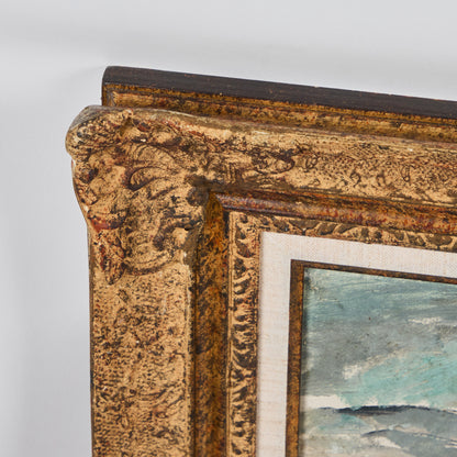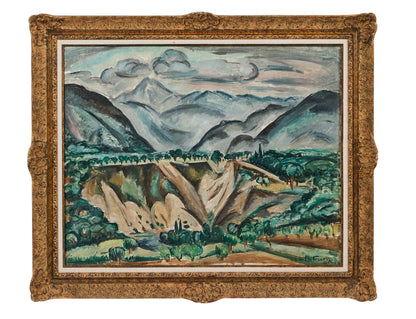 This landscape painting, signed and dated by the artist, reflects Friesz's refined post-Fauvist style, blending natural scenery with emotional depth and structural integrity. Set in a carved and painted wooden frame, the artwork captures the energy of the French countryside while showcasing the artist’s mastery of color and movement.