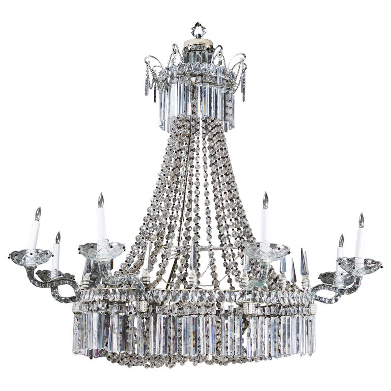 c. 1930 Genoese Eight-Arm Chandelier – Hand-Beaded with Clear & Ruby Crystal Swags