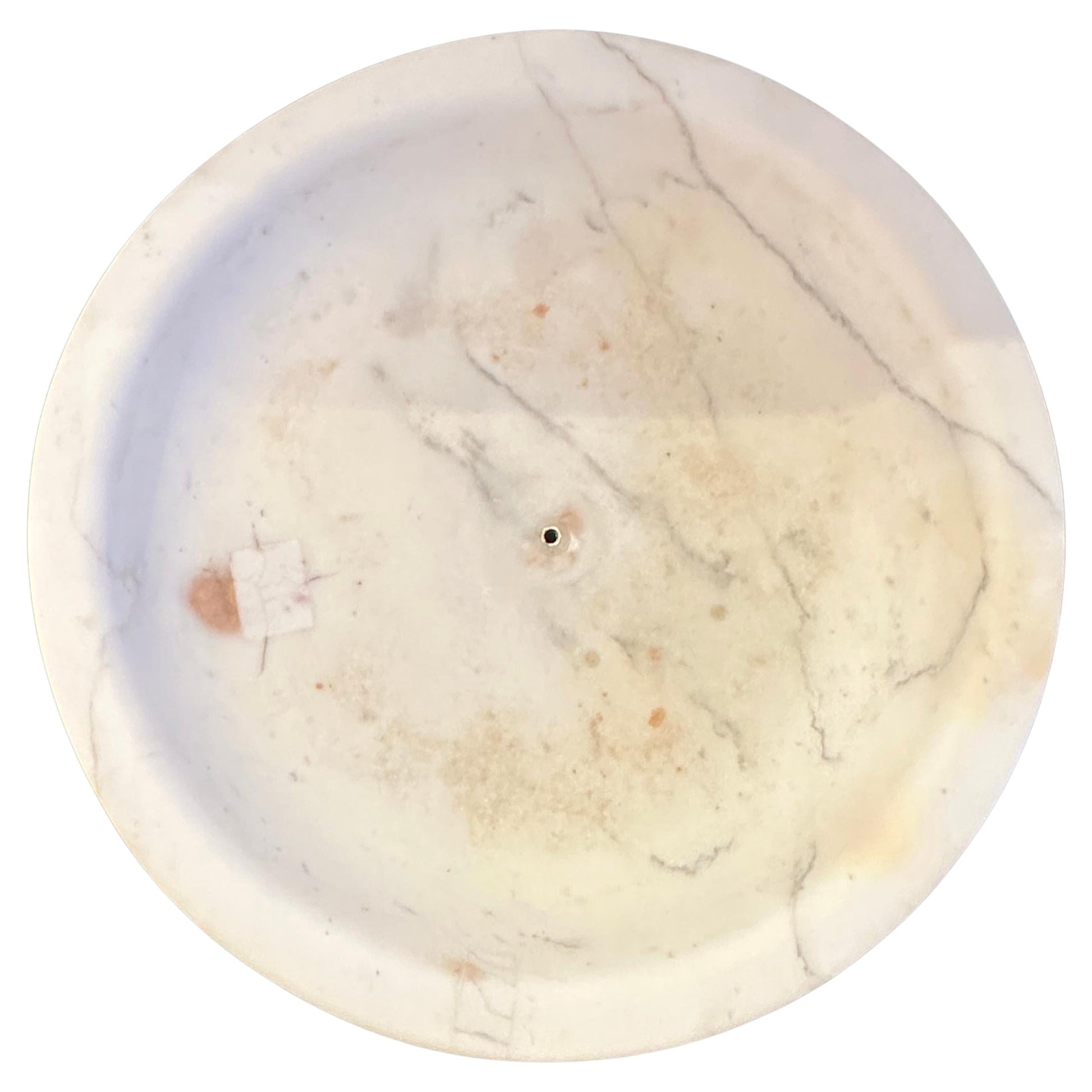 The broad, shallow bowl rises gracefully above its supporting base, its contours shaped with refined restraint to emphasize balance, symmetry, and purity of form. The tazza is one piece. The marble’s natural veining and soft tonal variation animate the surface, while centuries of age have imparted a gentle patina that enhances its depth and character.