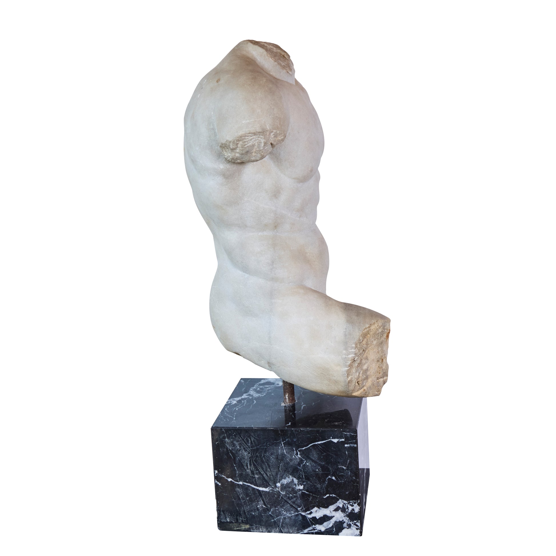Late 17th Century Hand-Carved Italian Carrara Marble Male Torso — Later Marble Base