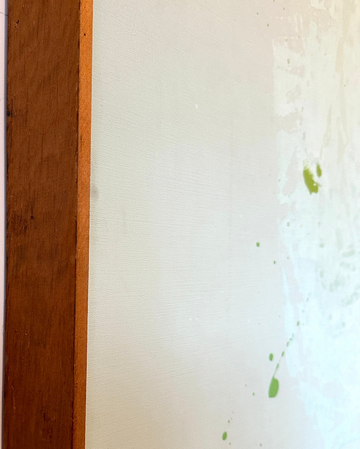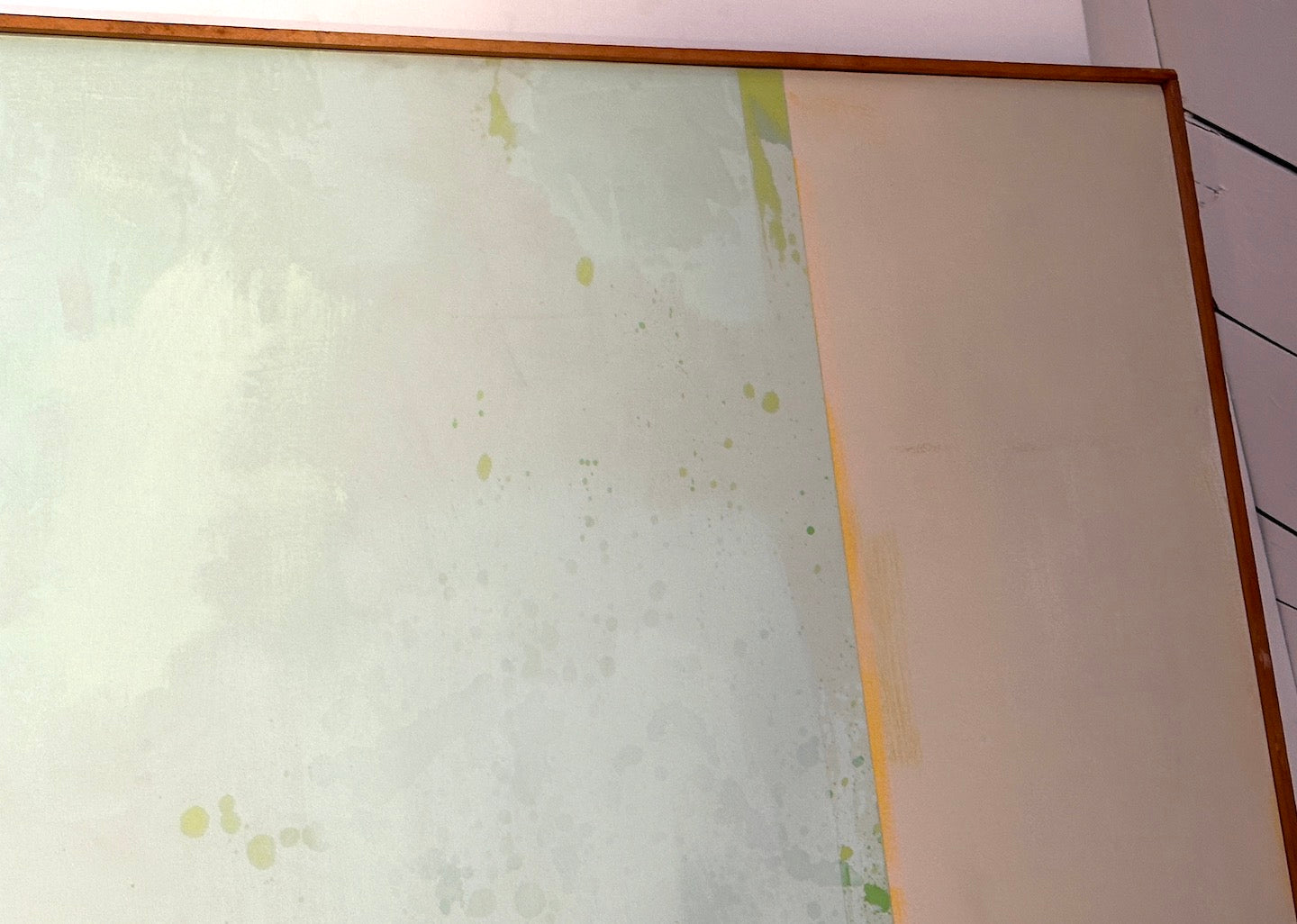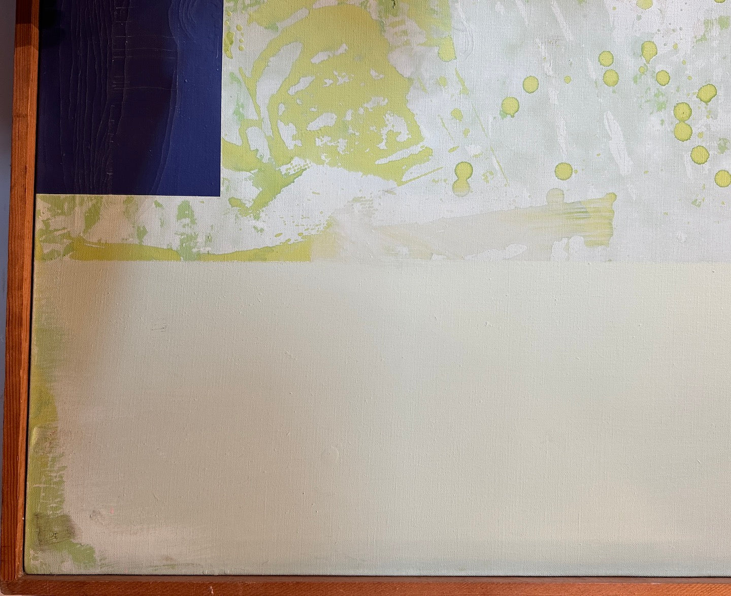 Housed in a simple wooden shadow frame, the artwork is ideal for collectors of 20th century American abstract art, museum-quality works, and large-format modern paintings.
