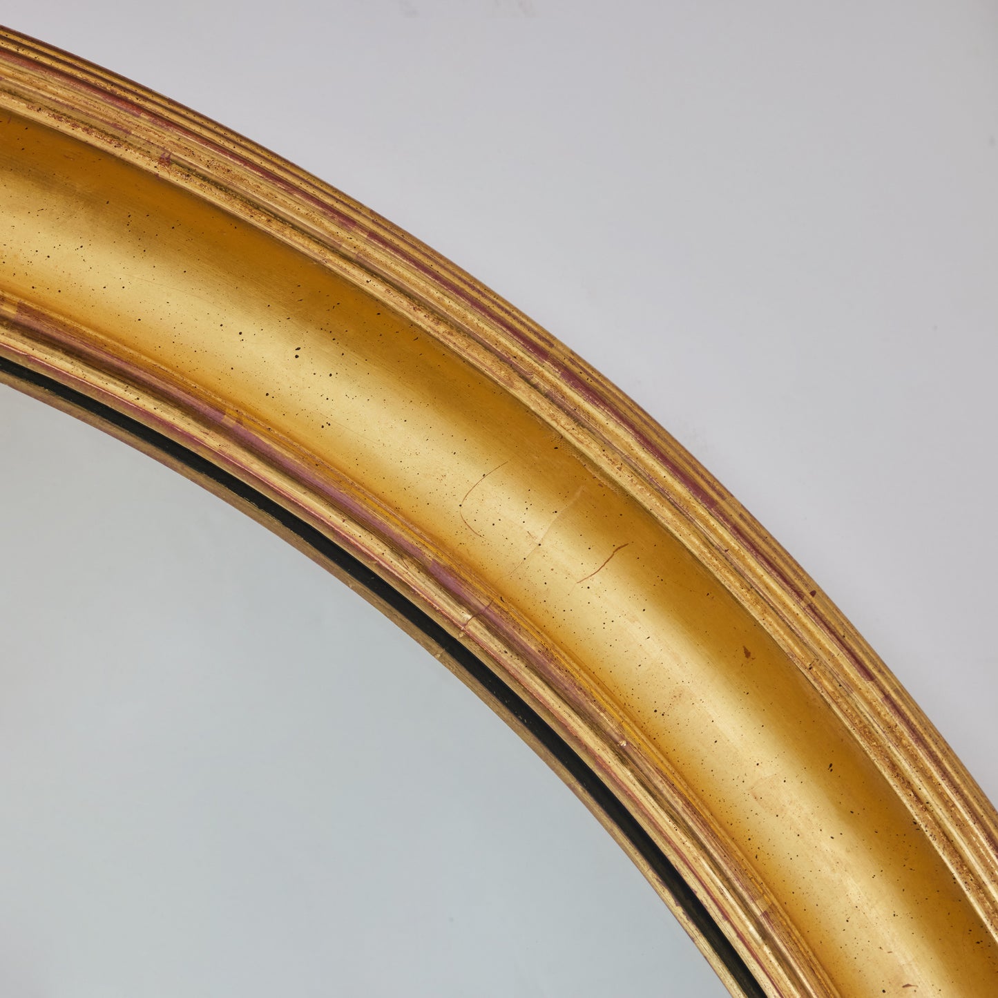 Large Gilded Round Mirror with Hand-Carved 22K Gold Frame – 20th Century American
