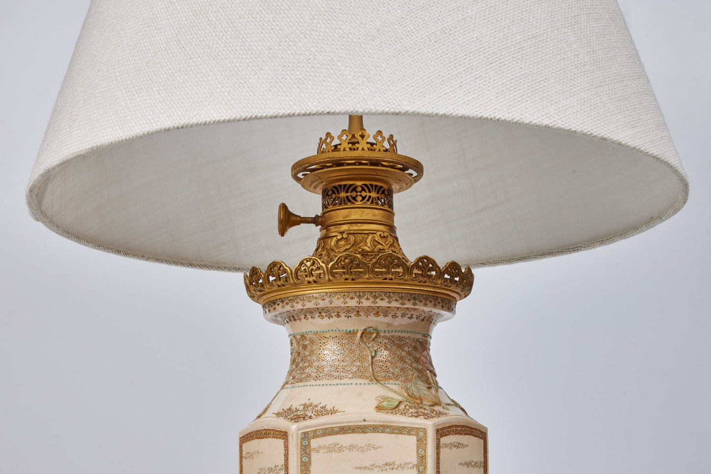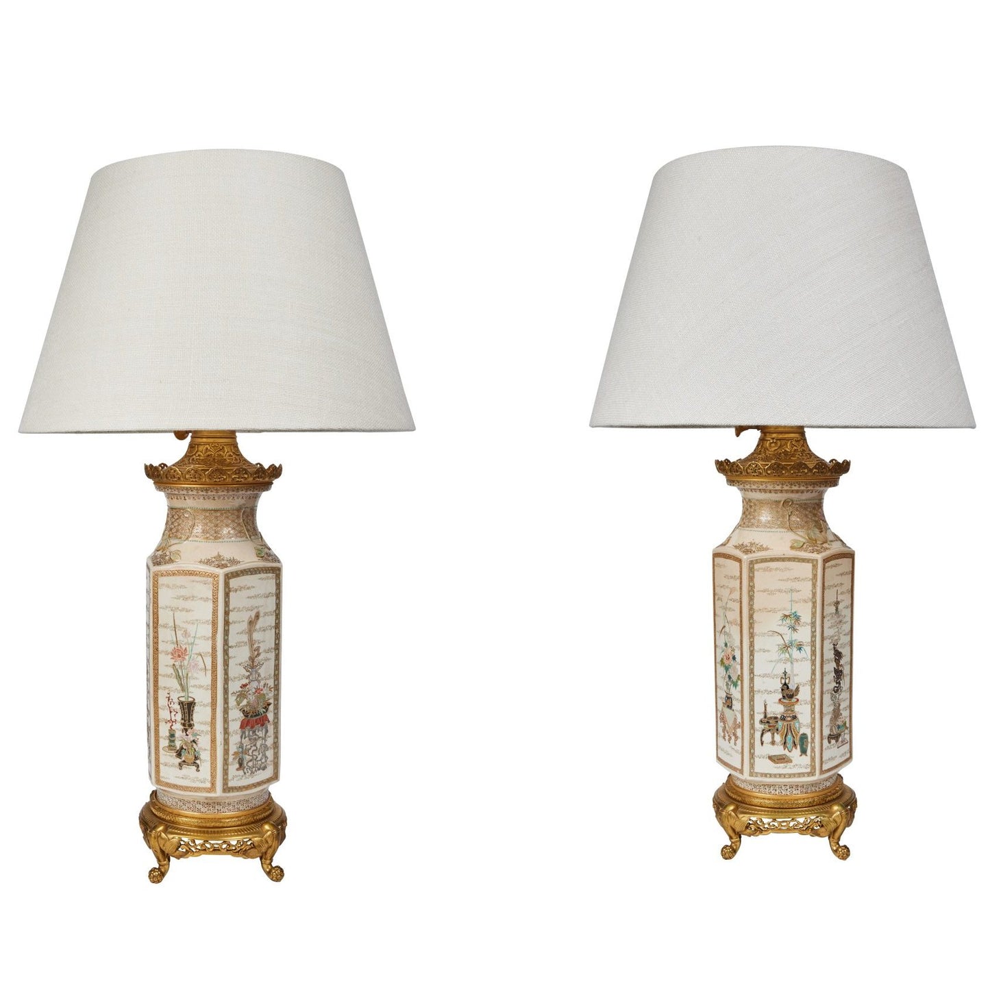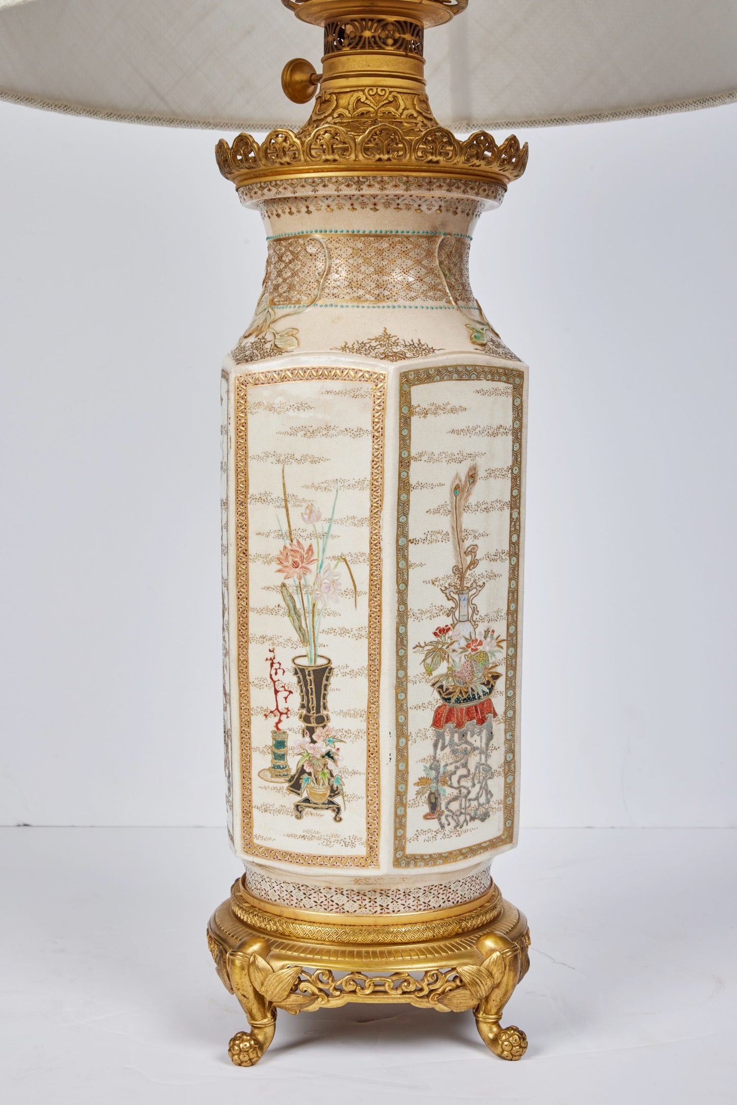 Pair of Japanese Satsuma Lamps with French Doré Bronze Mounts