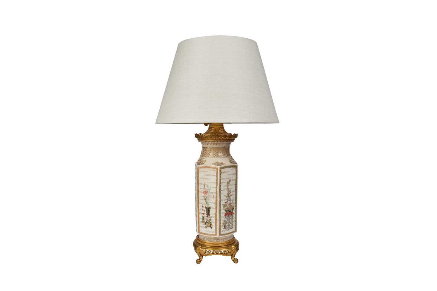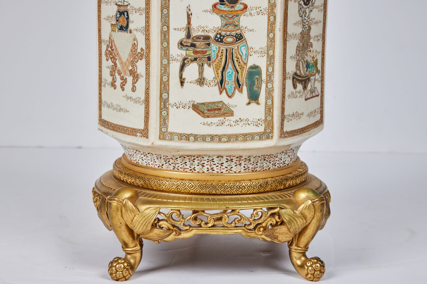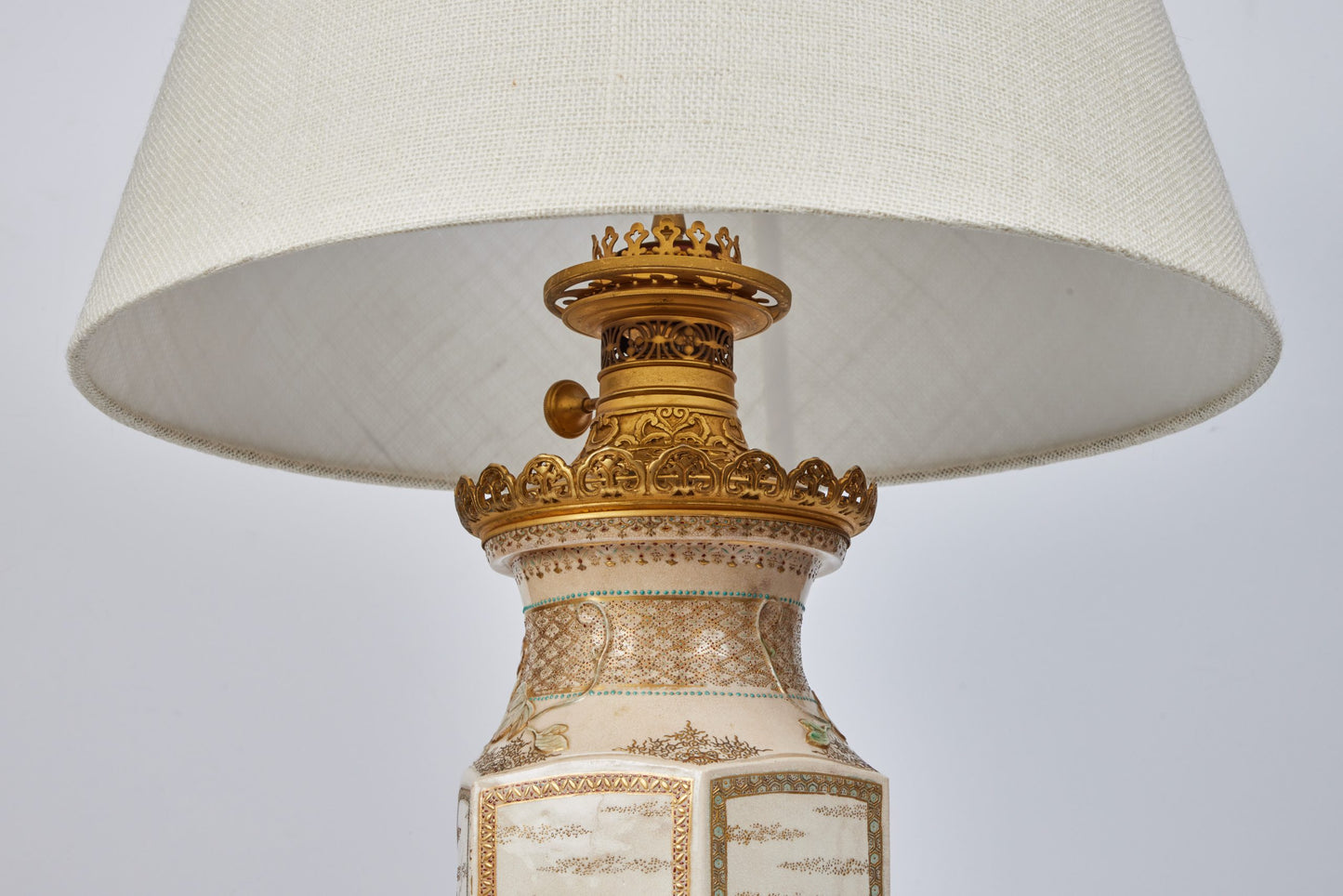 Pair of Japanese Satsuma Lamps with French Doré Bronze Mounts