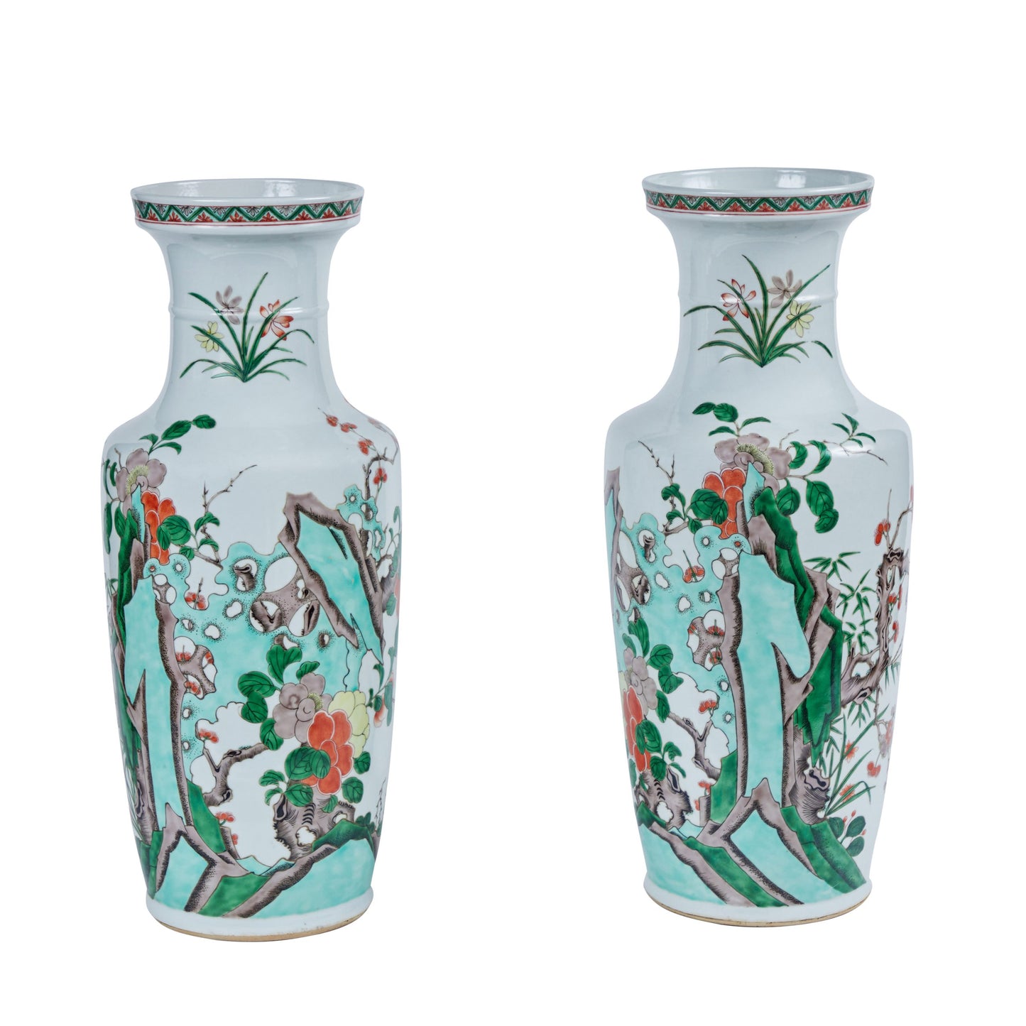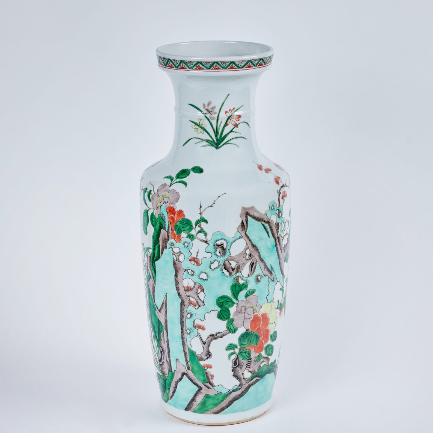 Standing at over 21 inches tall, these Republic-era porcelain vases bring both scale and historic charm to any interior. Ideal for collectors of Chinese decorative arts, antique porcelain, or statement décor, they offer a brilliant example of early 20th-century craftsmanship influenced by centuries of tradition in Chinese export porcelain design.