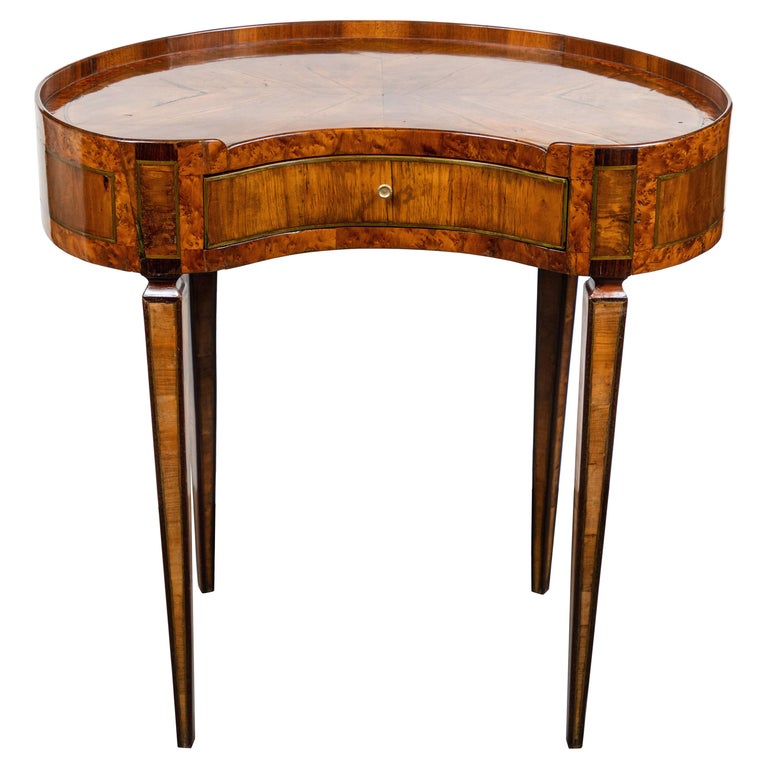 c. 1820 Italian Kidney-Shaped Side Table – Genovese Burl & Pearwood Veneer with Parlor Edge