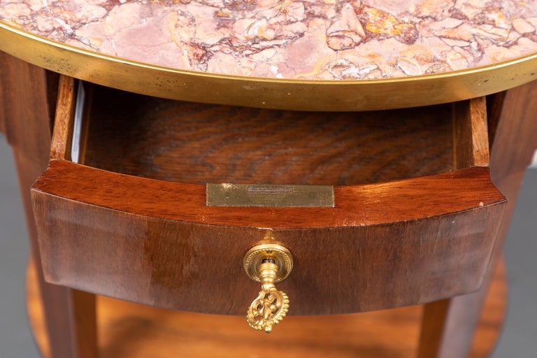 With its gilt bronze accents and graceful proportions, this table serves beautifully as a bedside, occasional, or lamp table, offering a timeless blend of French craftsmanship, noble materials, and period sophistication.