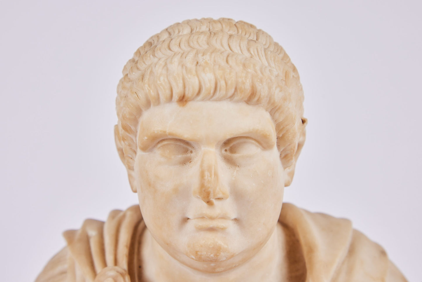 18th Century Petite Carrara Marble Bust of Roman Leader with “Ottoni” Inscription