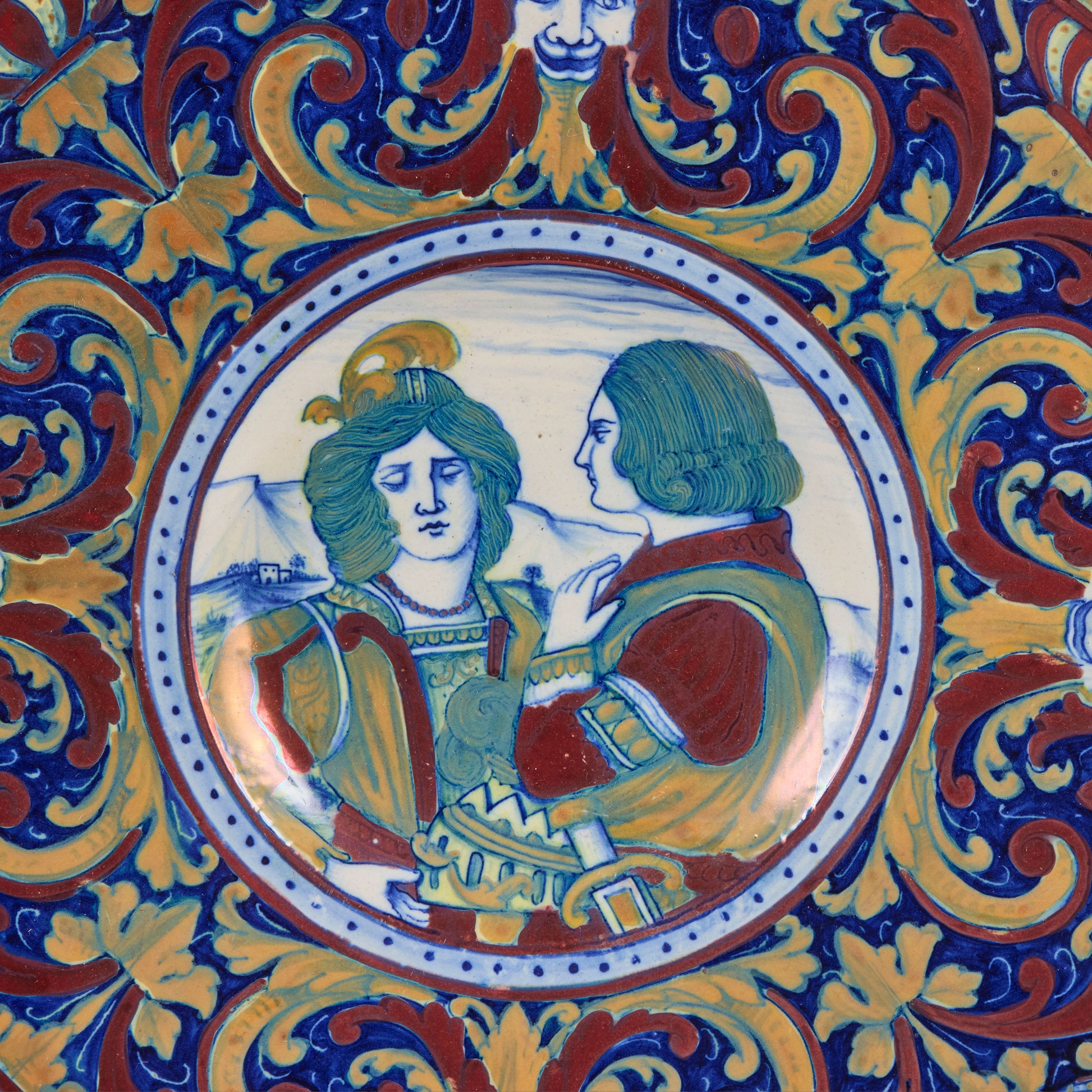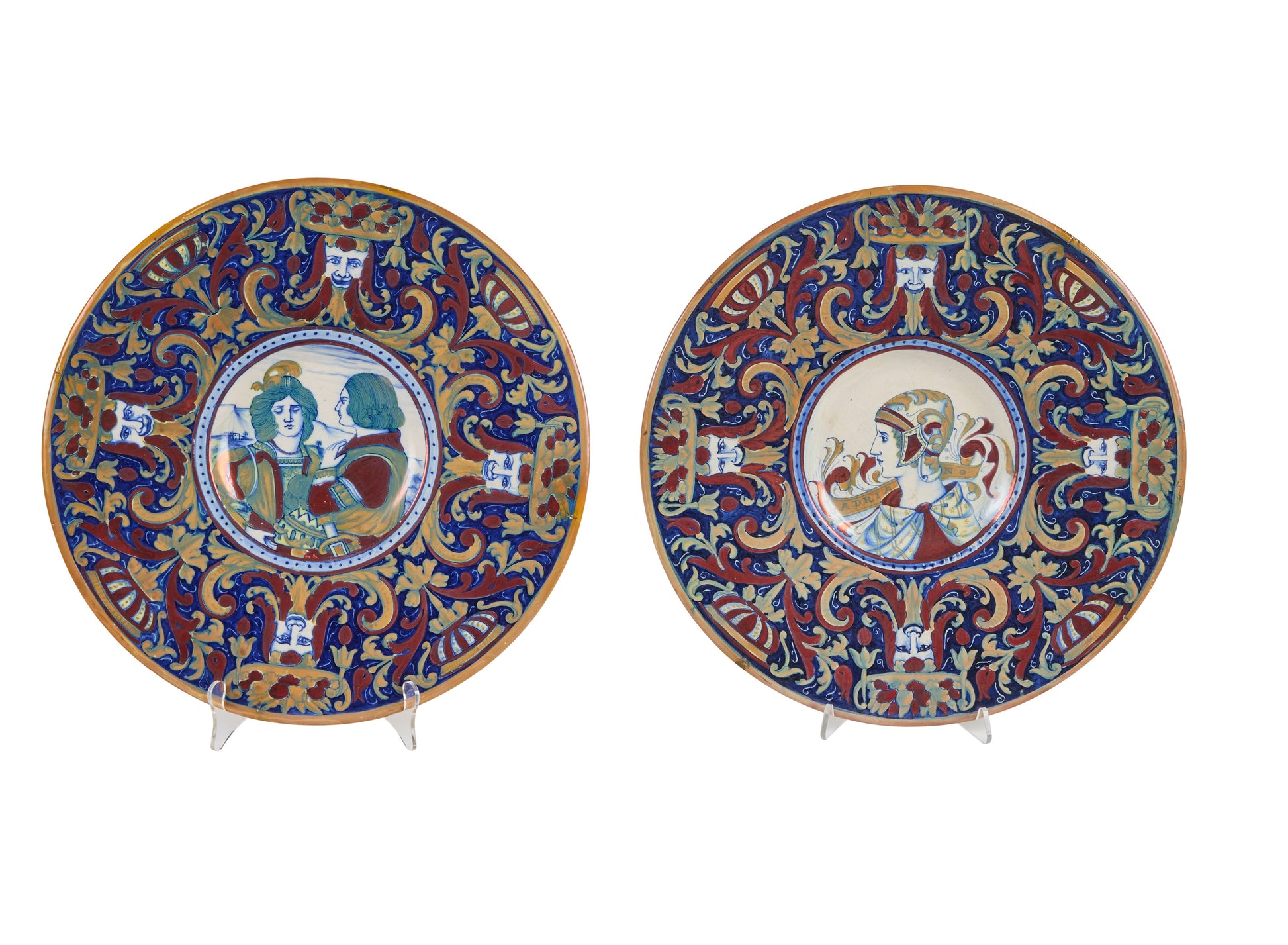 19th Century Pair of Tin-Glazed Ceramic Platters – Hand-Painted Italian Majolica from Naples
