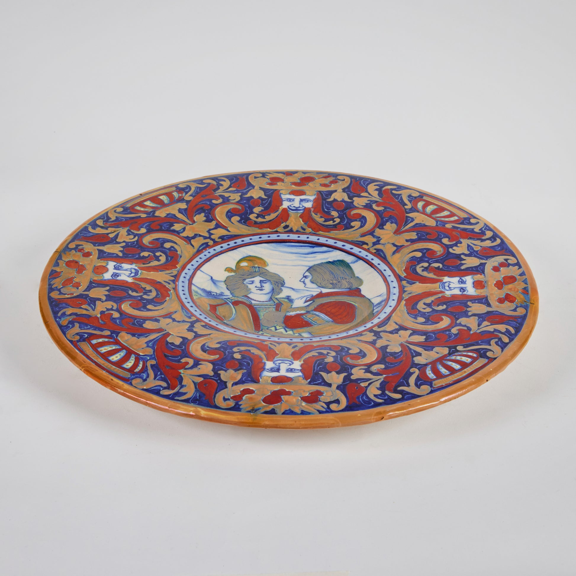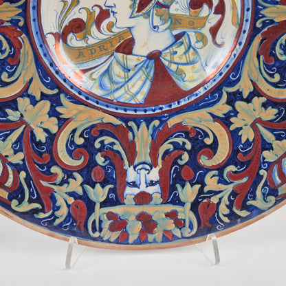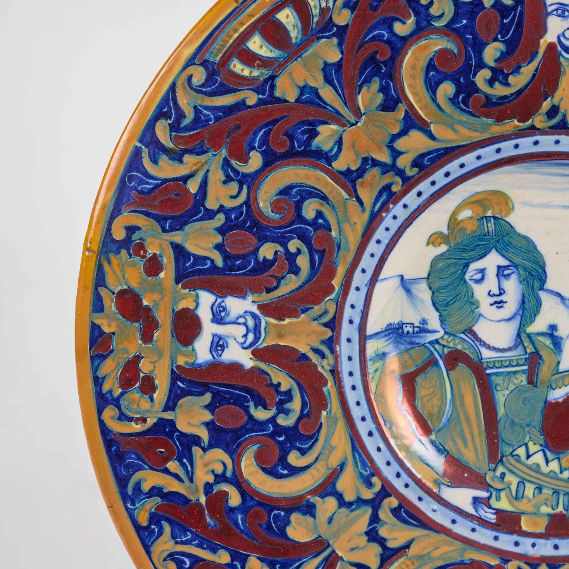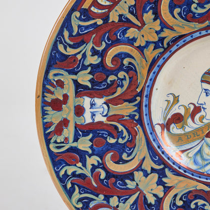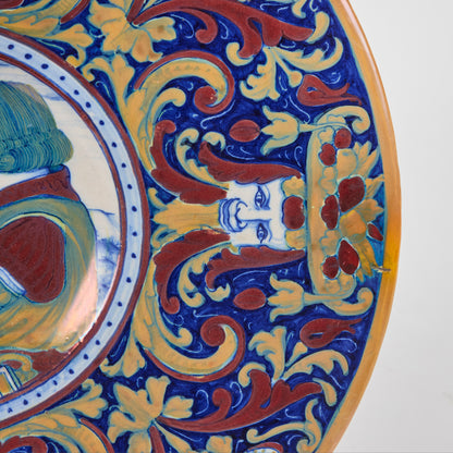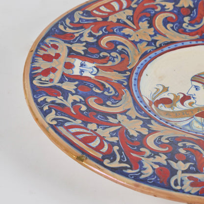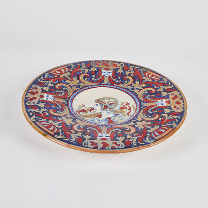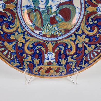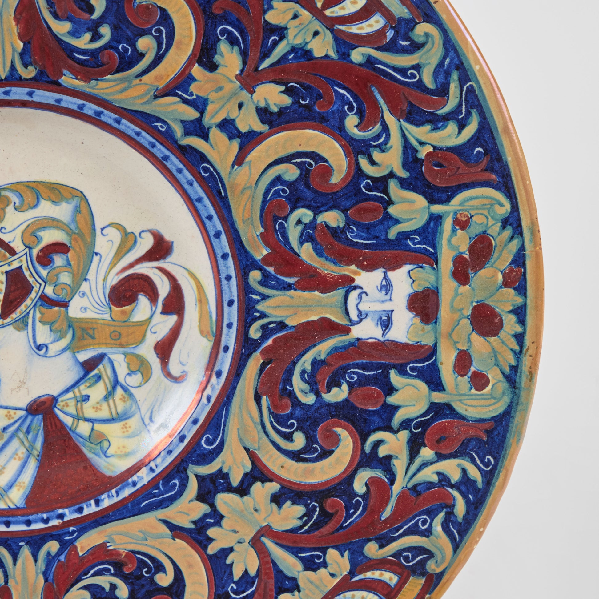 Each tin-glazed platter showcases a beautifully glazed surface with vivid pigments that remain strikingly fresh, making them ideal as decorative wall plates, tabletop centerpieces, or part of a Mediterranean-inspired kitchen or dining display.