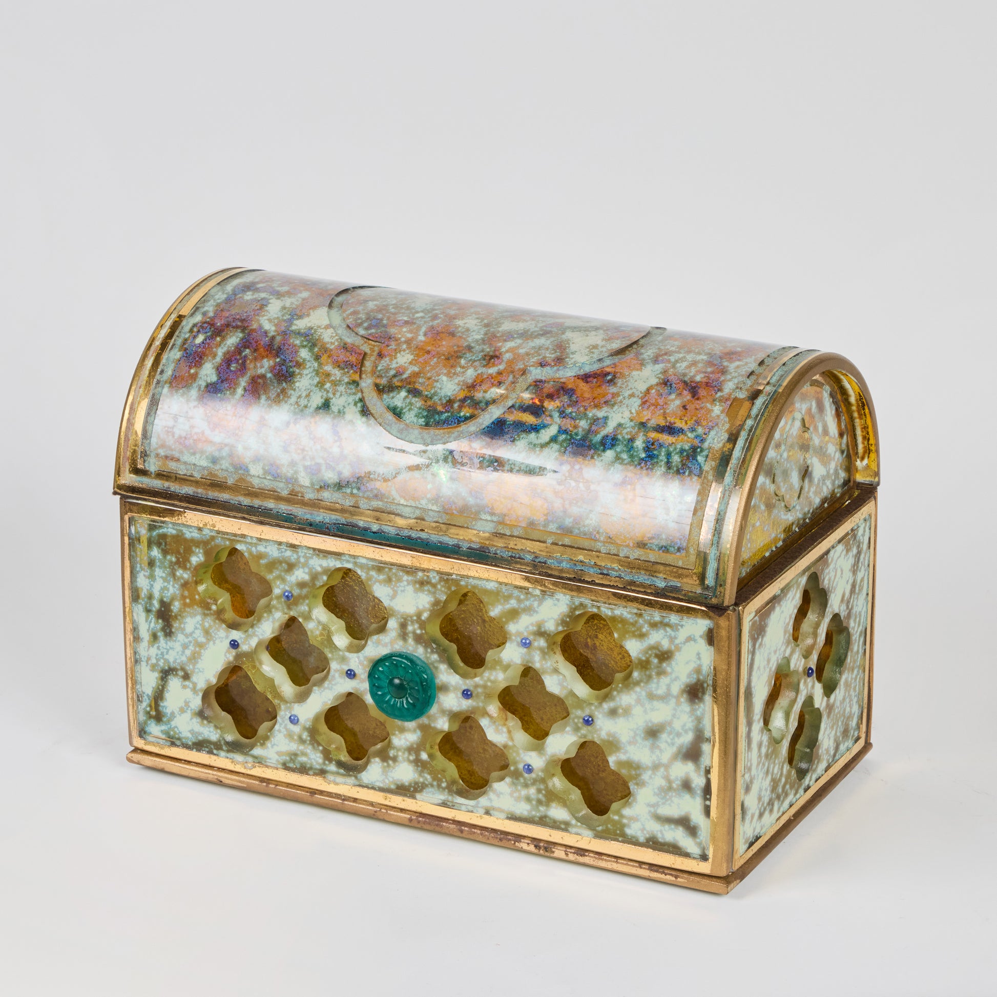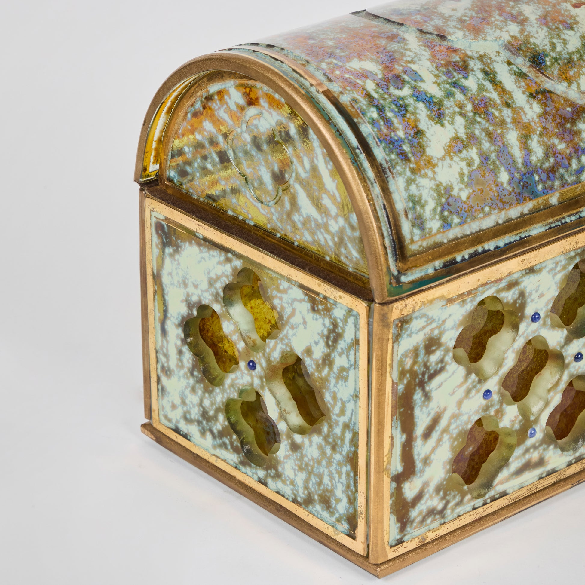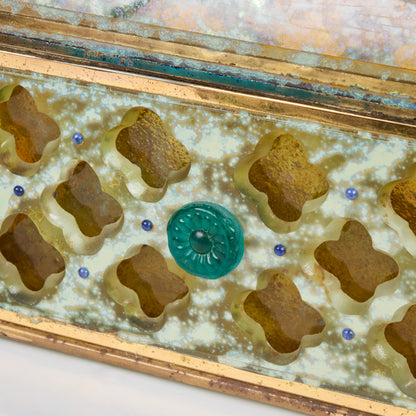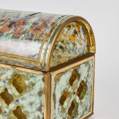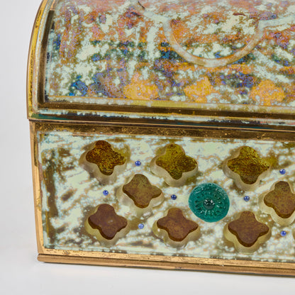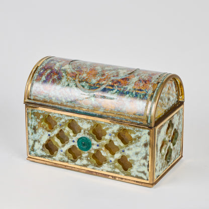 Circa 1900 Venetian Glass Casket – Gilded Decorative Box with Lapis Accents & Glass Medallion