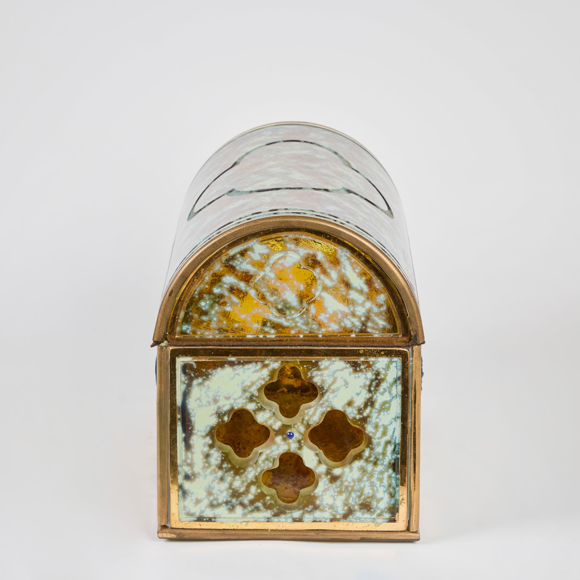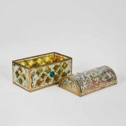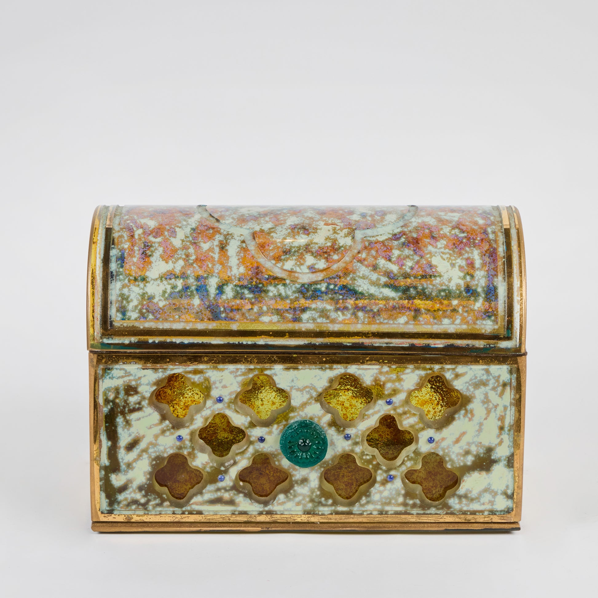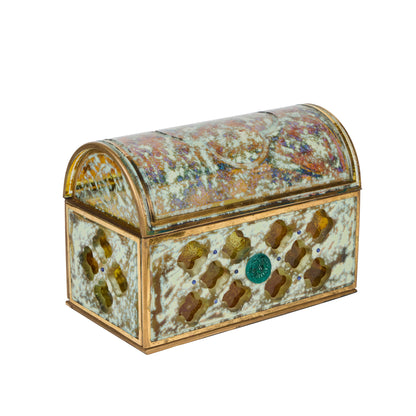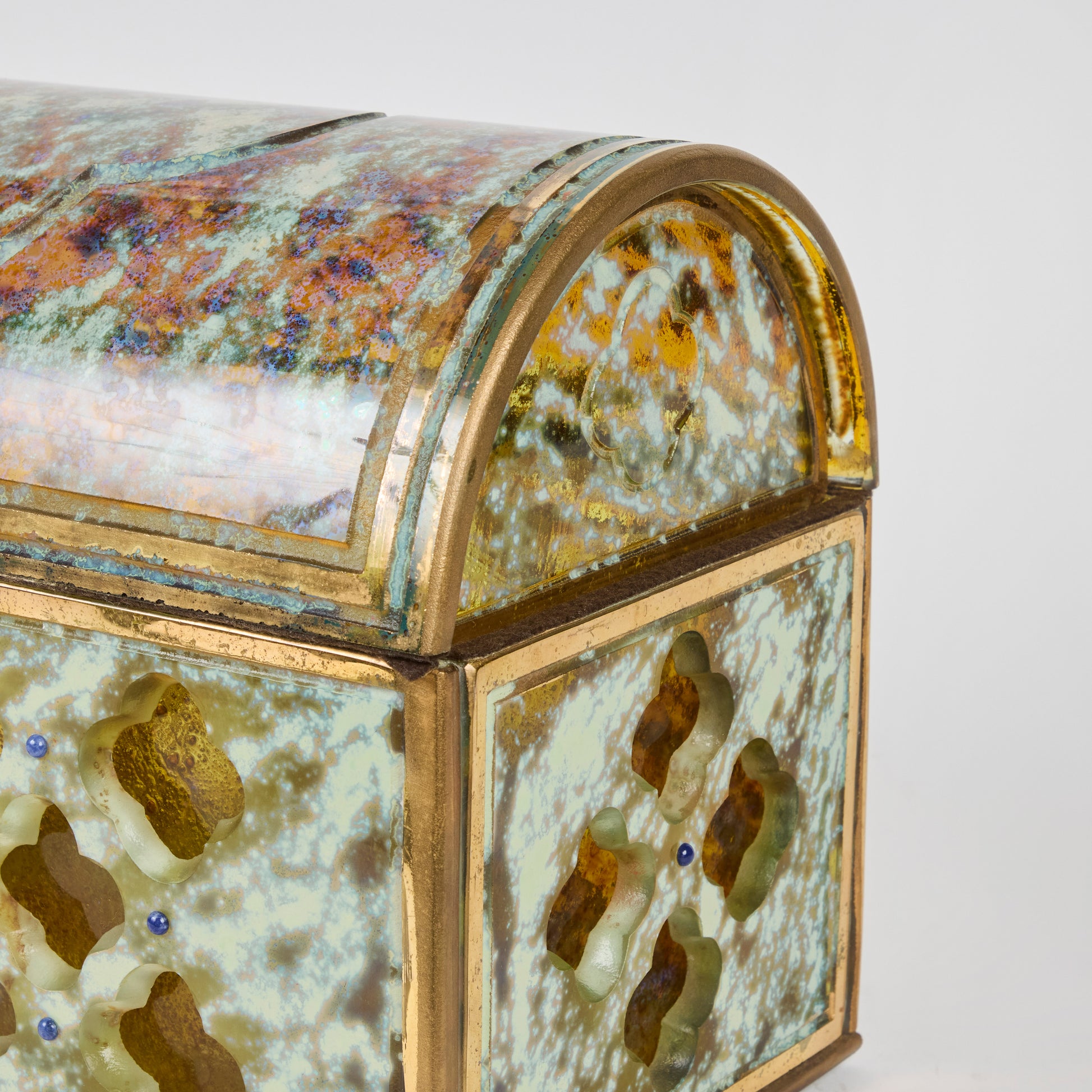 Circa 1900 Venetian Glass Casket – Gilded Decorative Box with Lapis Accents & Glass Medallion